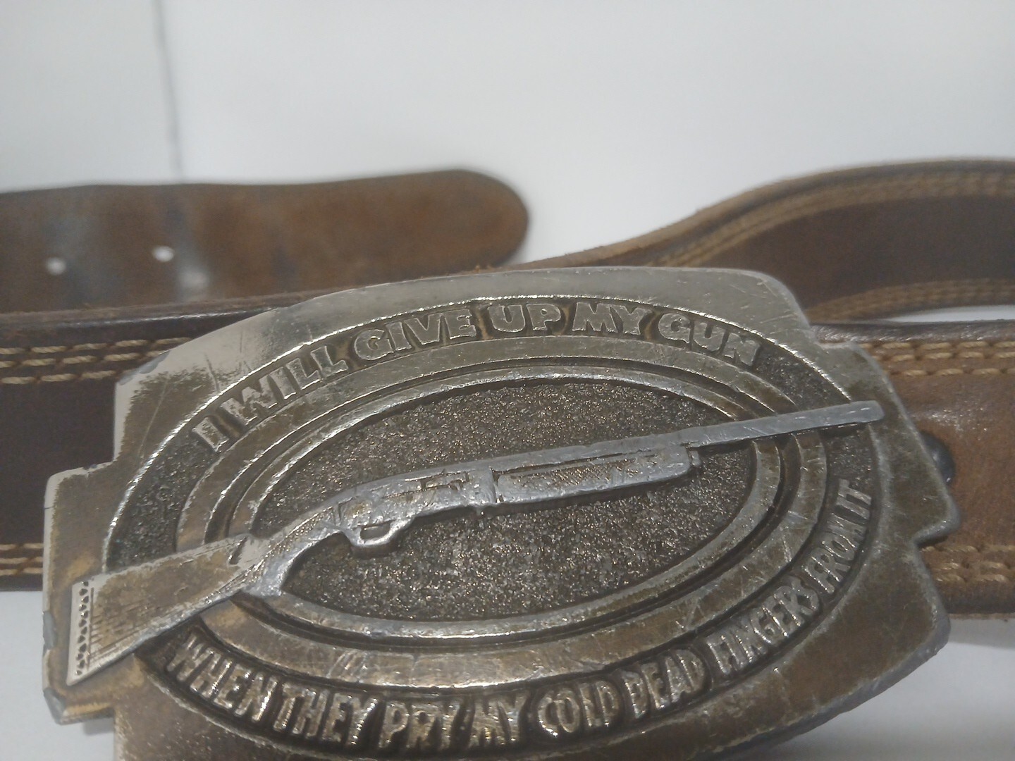 Vintage Belt Buckle I WILL GIVE UP MY GUN WHEN THEY PRY MY COLD DEAD FINGERS..