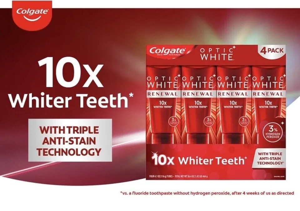 как выглядит 4 Colgate Optic White Renewal 10X Whiter Teeth Whitening Toothpaste Exp. 6/25 фото