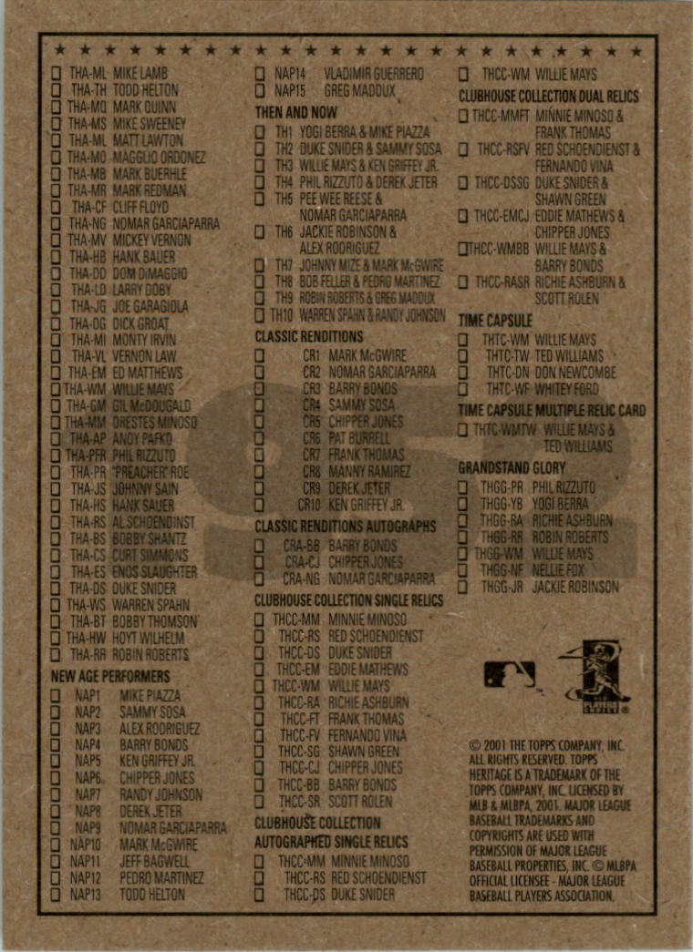 • 2001 Topps Heritage Baseball Card Pick Base 103-309