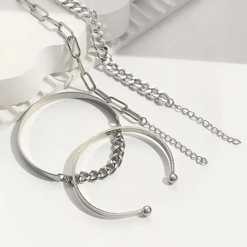 Simple Bracelet Set 4 Pcs/Set With Bangle Chain Bracelet Multilayer Hand