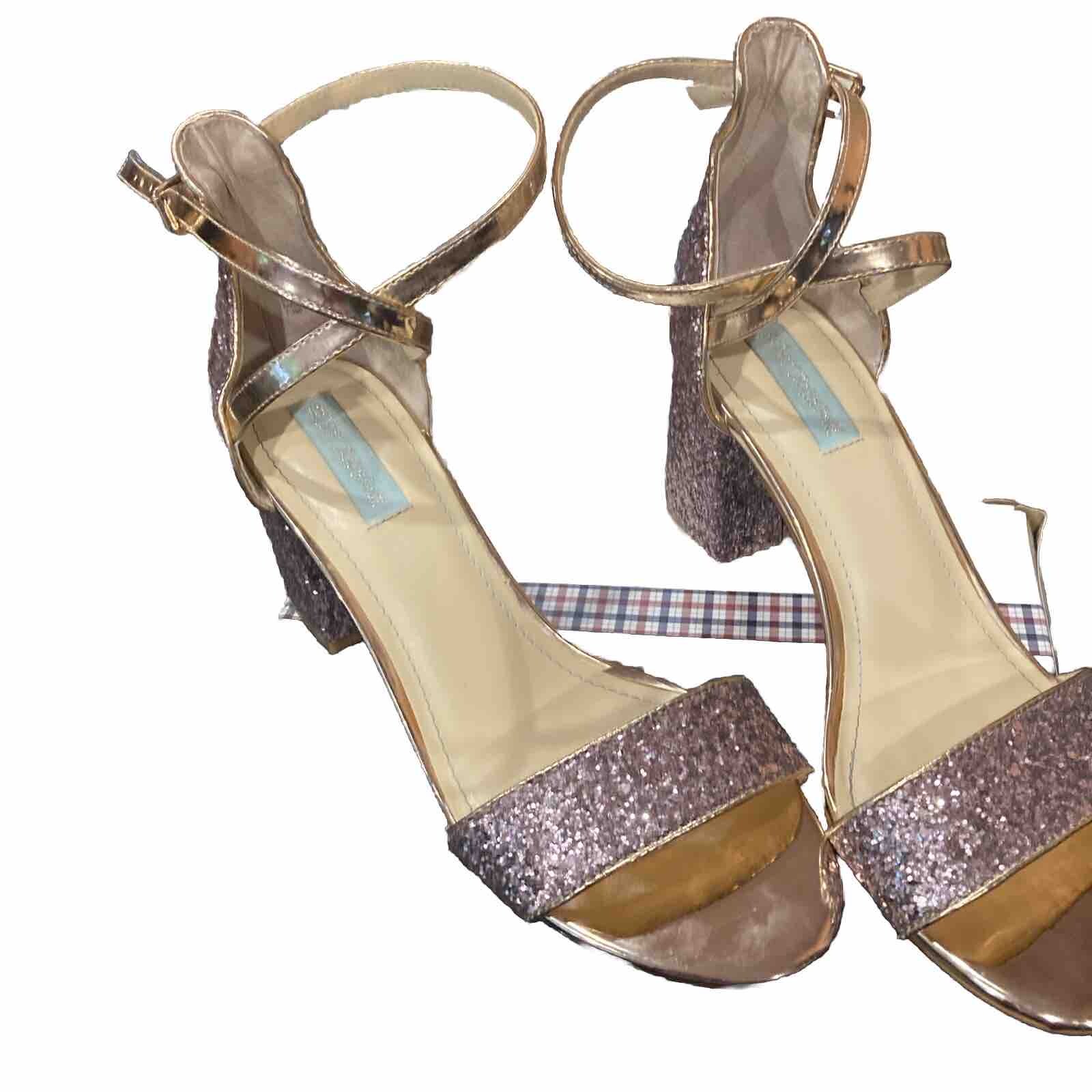 Betsey Johnson Libra Champagne Glitter Sandal Ankle Strap Size 10 Stunning