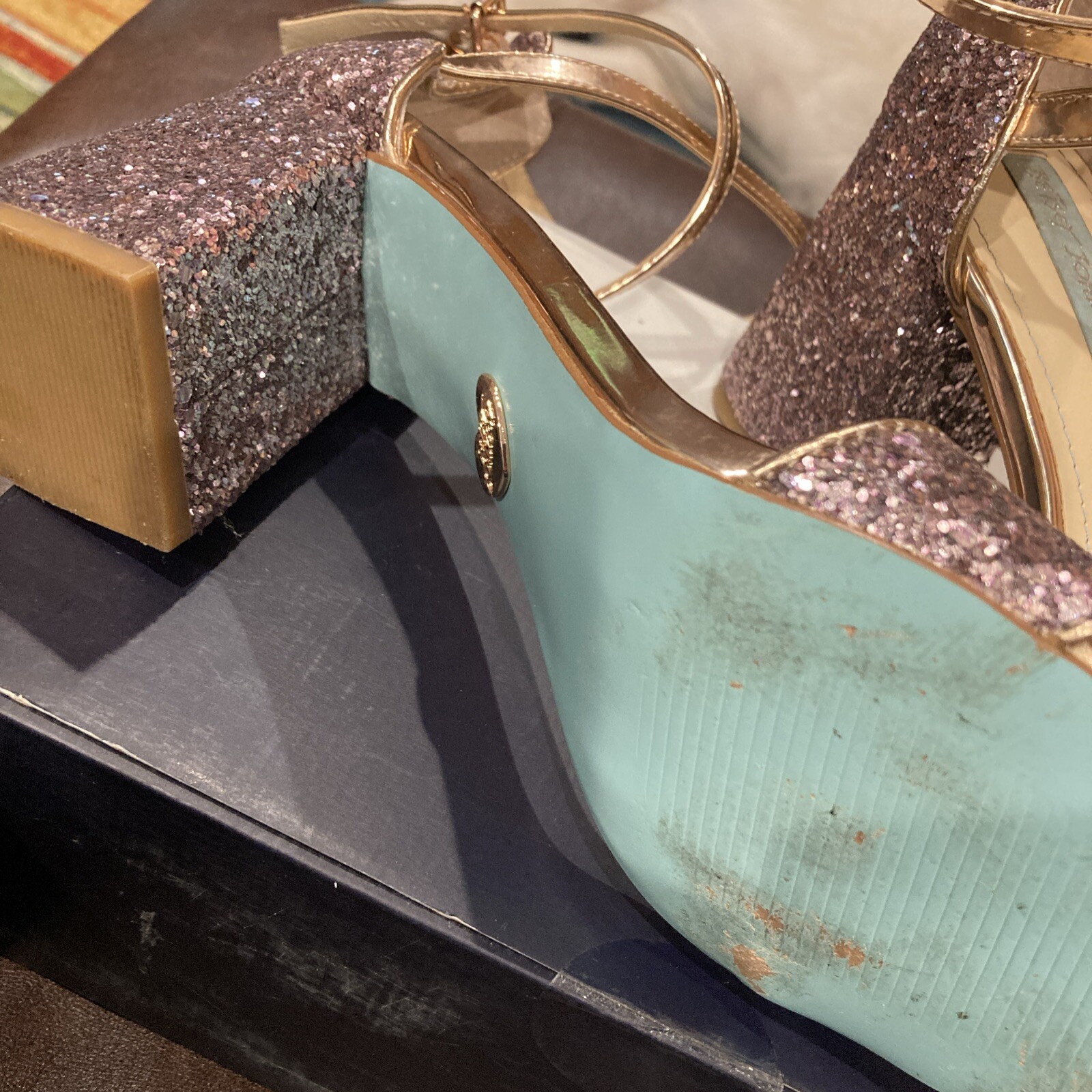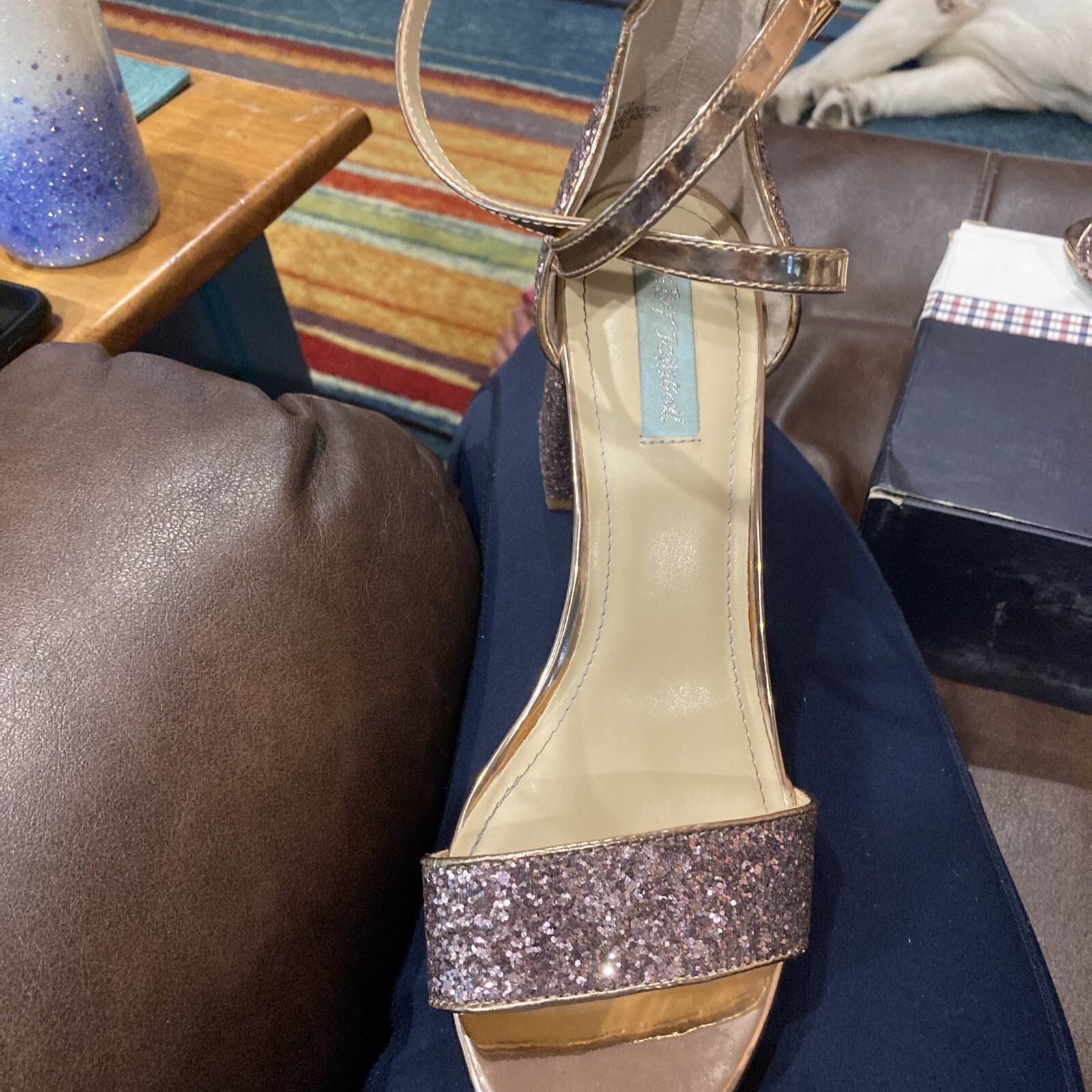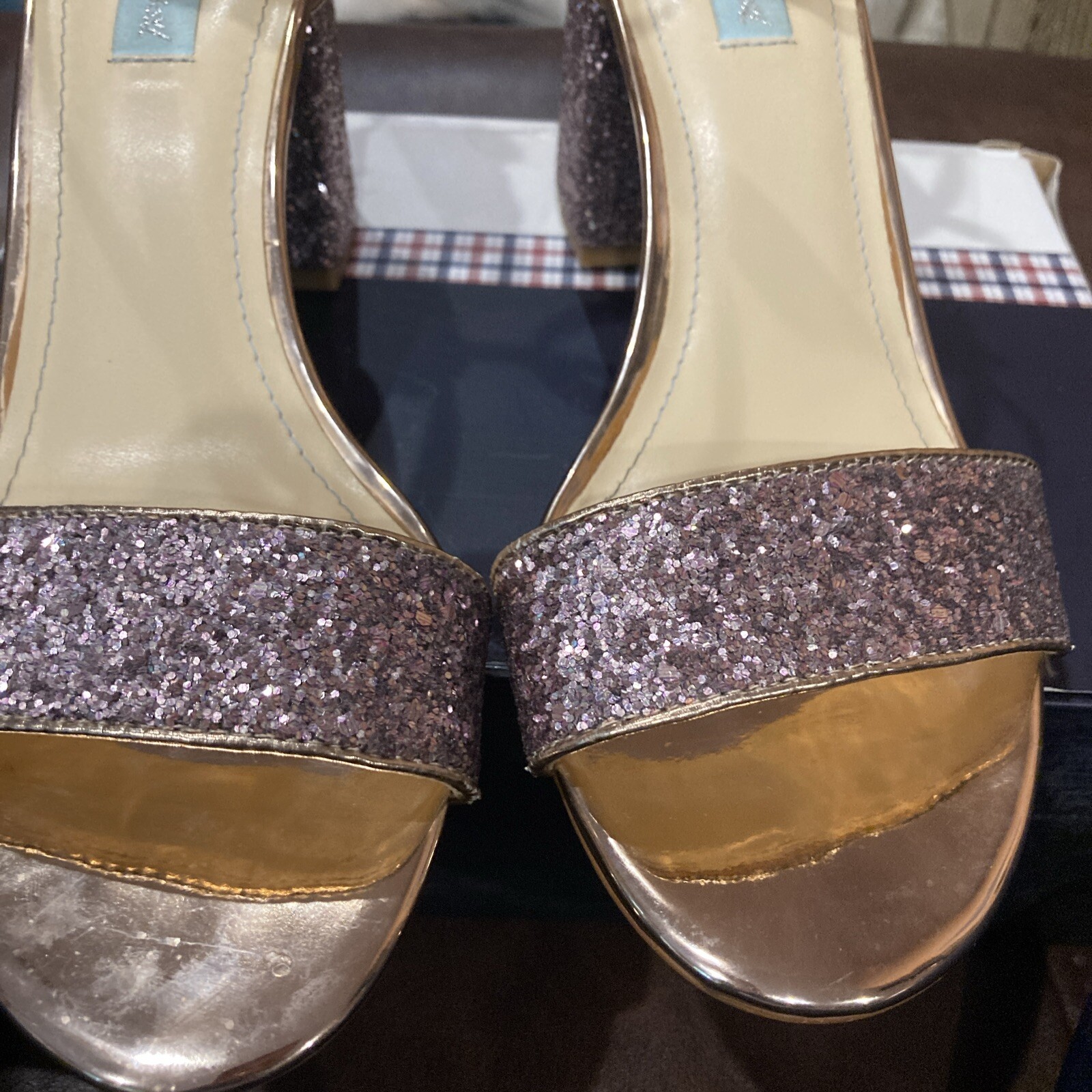 как выглядит Betsey Johnson Libra Champagne Glitter Sandal Ankle Strap Size 10 Stunning фото