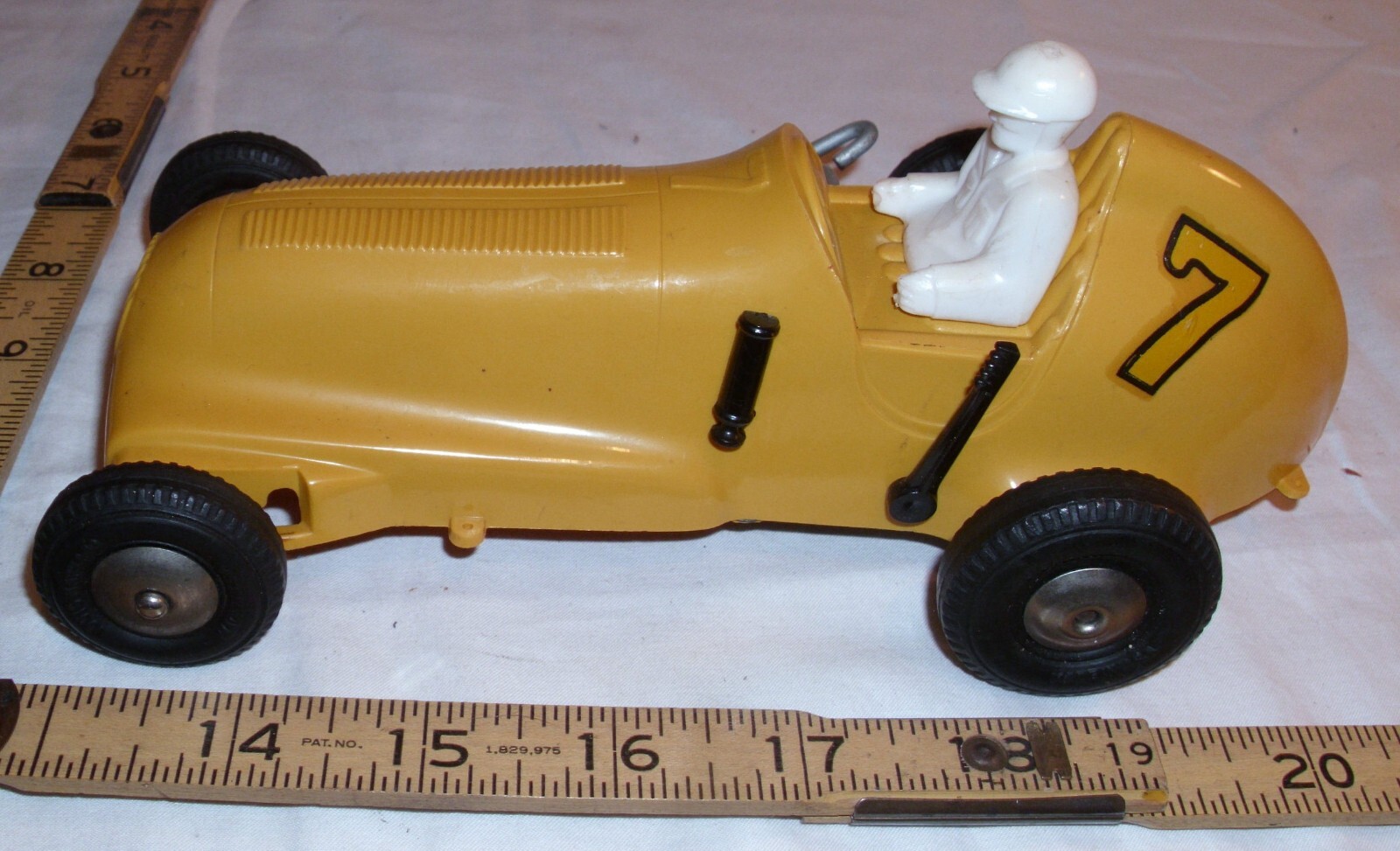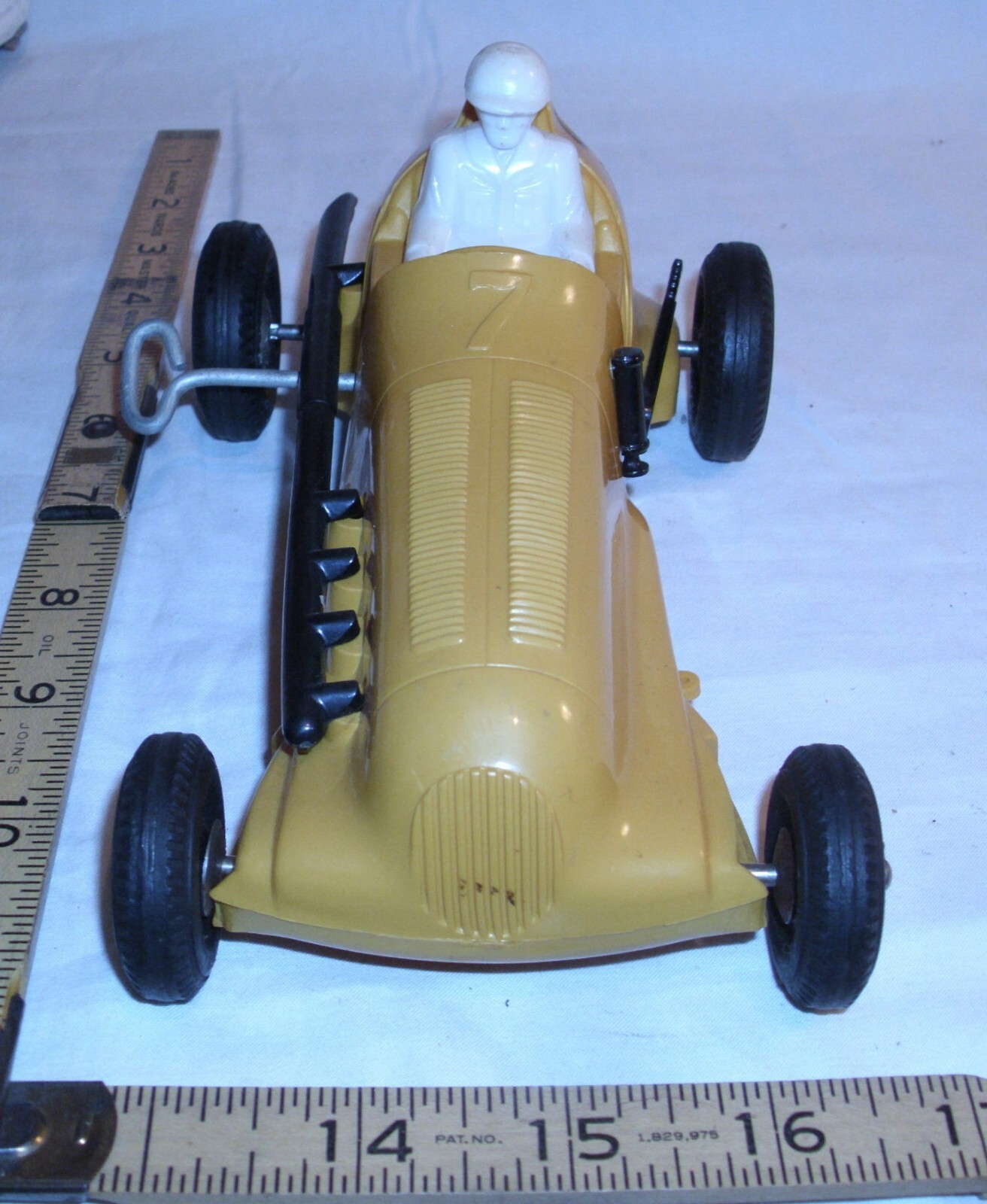 как выглядит MARX 7 SPRINT OPEN WHEEL RACE CAR WIND UP PLASTIC TOY 1950s IN YELLOW фото