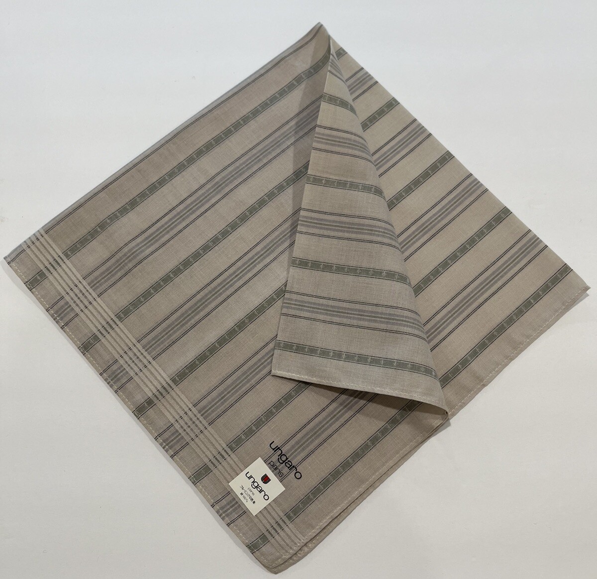 HANDKERCHIEF MEN UNGARO ART VINTAGE STRIPED LINE PLAIN POCKET SQUARE COTTON 18