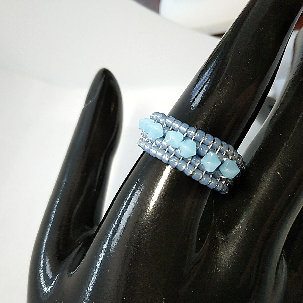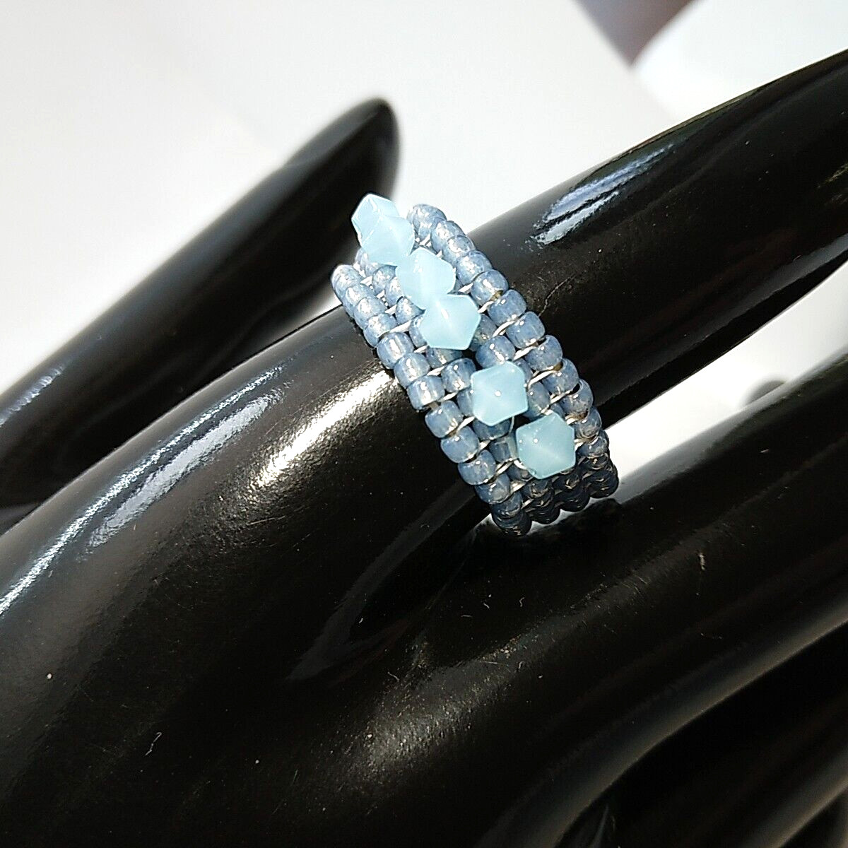 как выглядит Artisan Made Blue Band Ring Blue Glass Crystals Size 9.75 фото