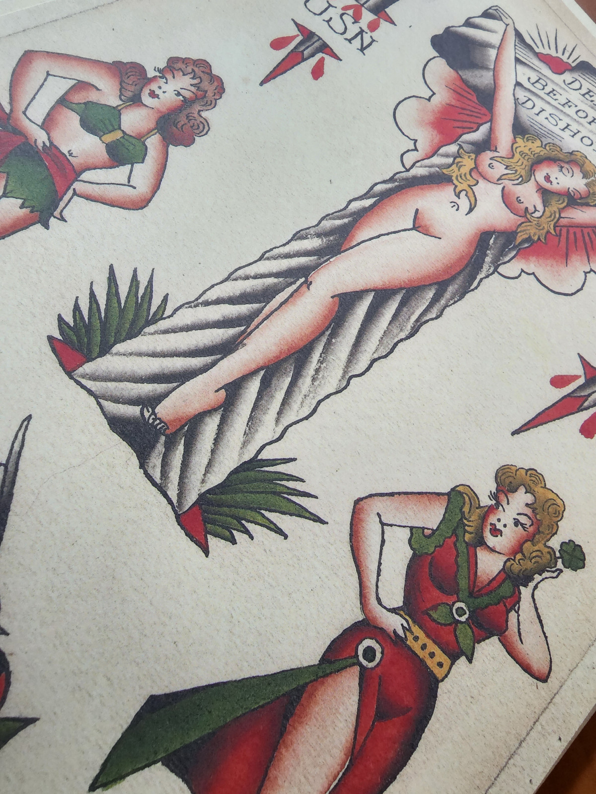 10 Sheets Brooklyn Joe Lieber Traditional Vintage Style Tattoo Flash W/ Photo 1