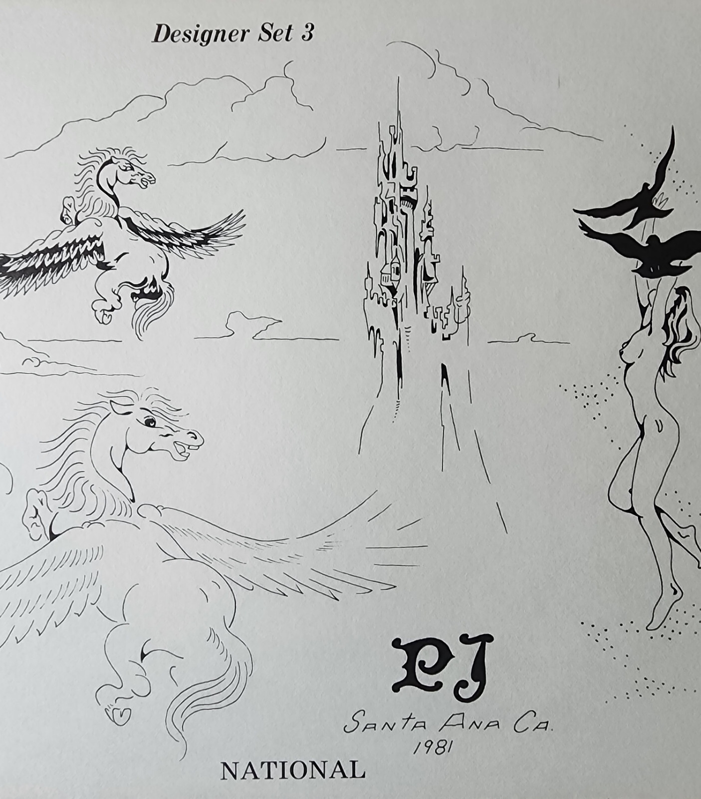 ORIGINAL PJ English Traditional Vintage 1981 National Tattoo Flash Sheet Girl