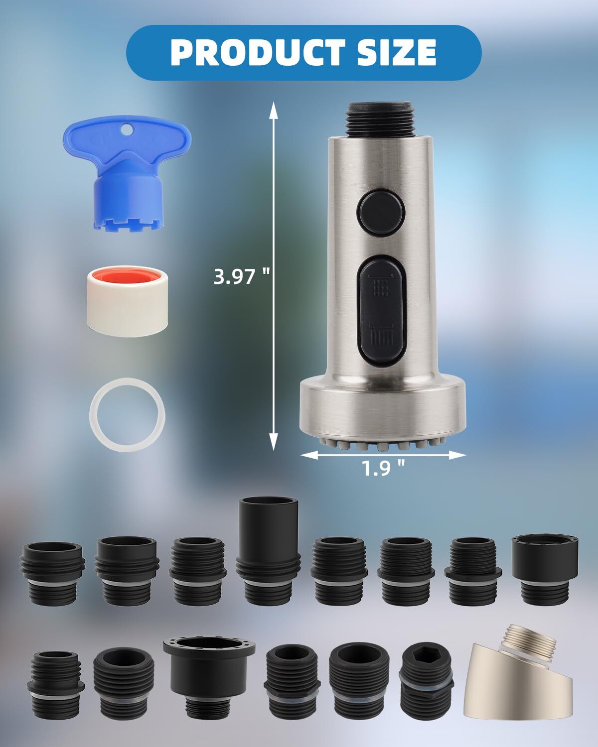 Items Included: Kitchen Faucet Head, Adapters