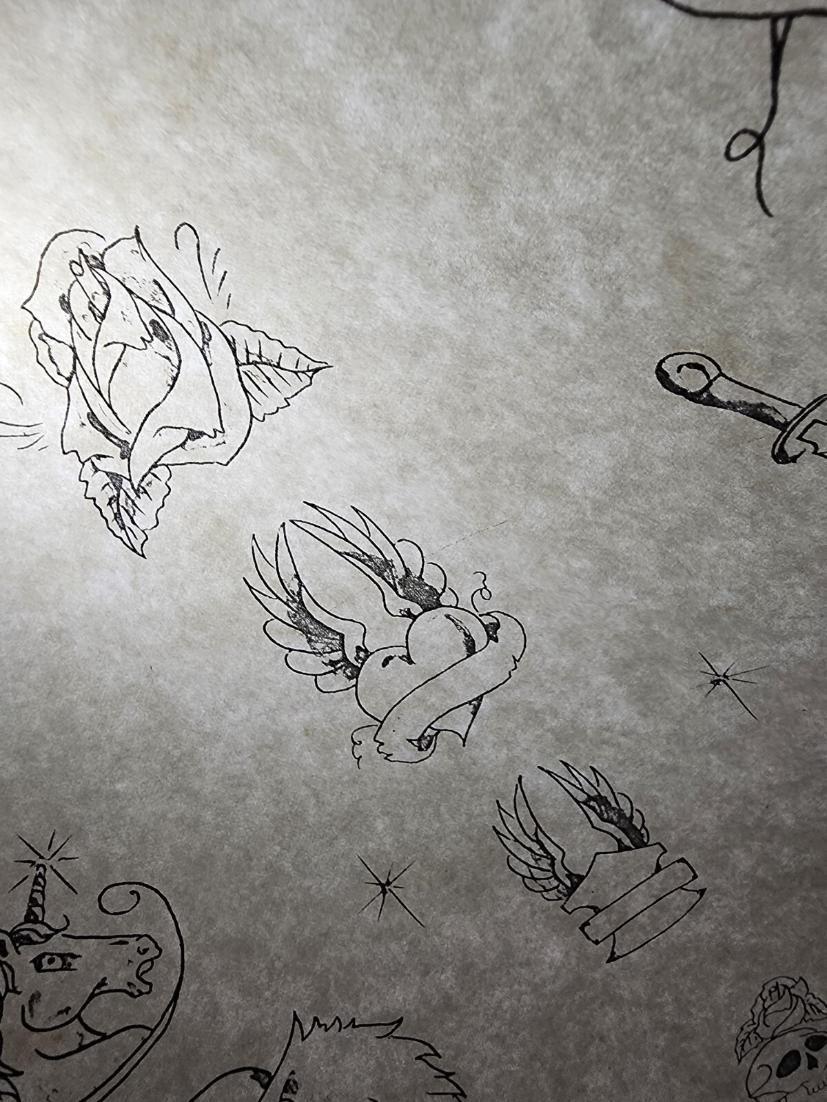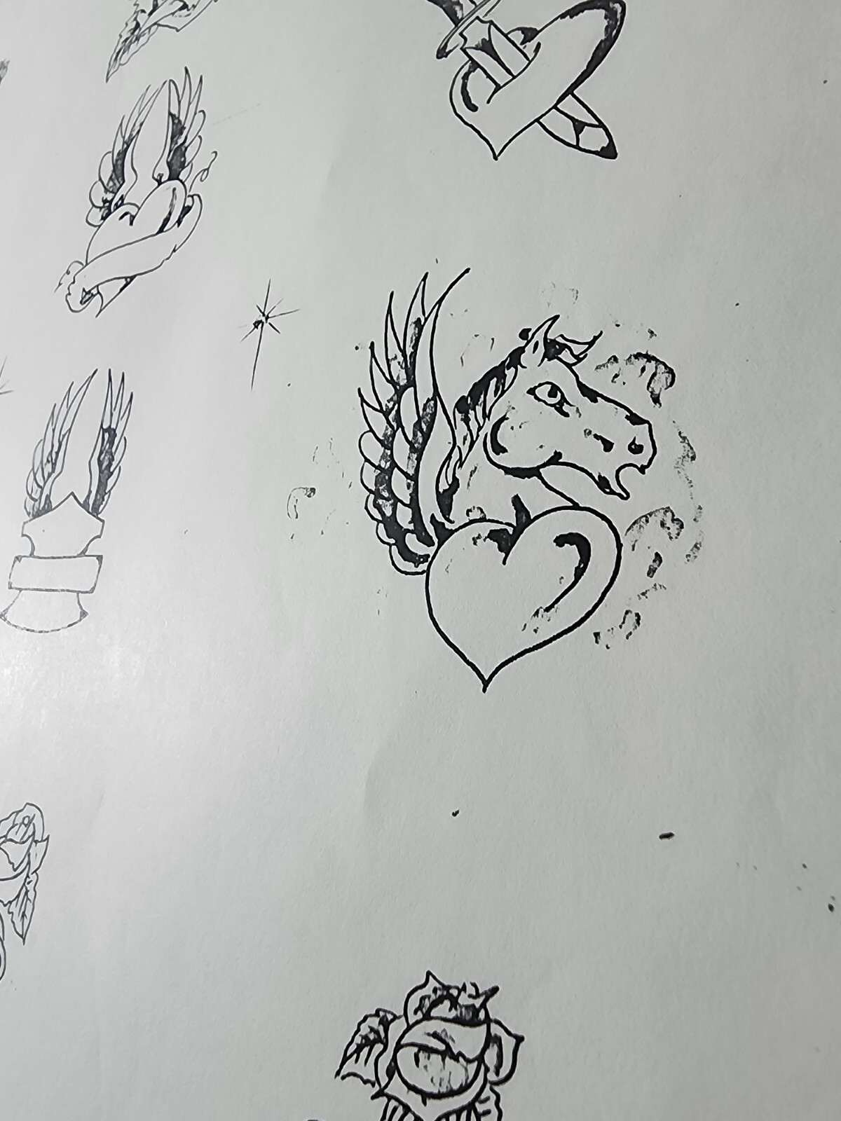 1987 Tatts Tommy Vintage Biker Style Tattoo Flash Sheet Skull, Eagles, Rose, USA