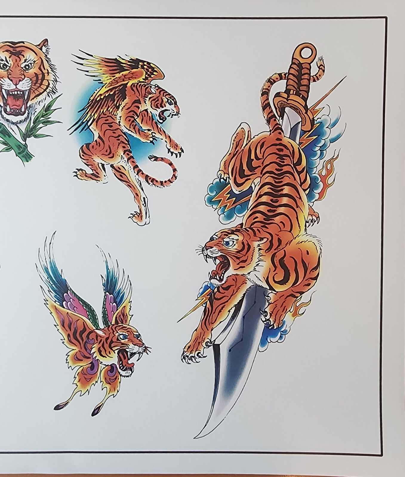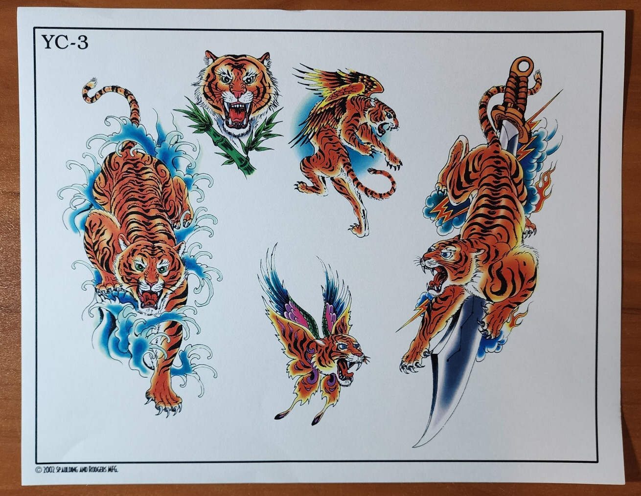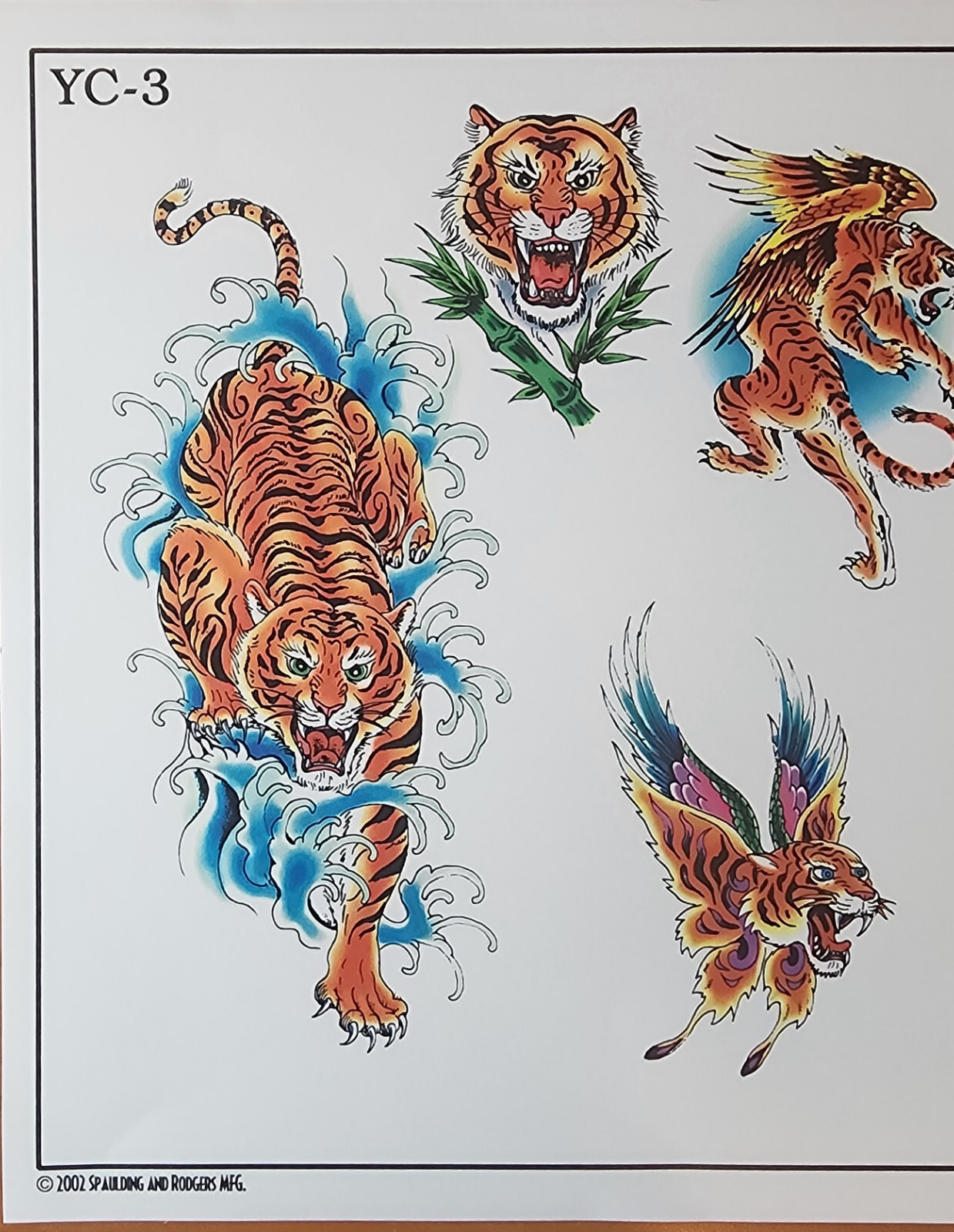 Vintage Spaulding Rogers Pinky Yun Traditional Japanese Tattoo Flash Sheet YC3