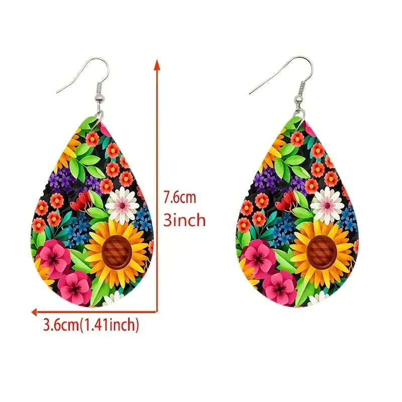 Fashion Boho Flower Pattern Design Water Drop Dangle Earrings Women New