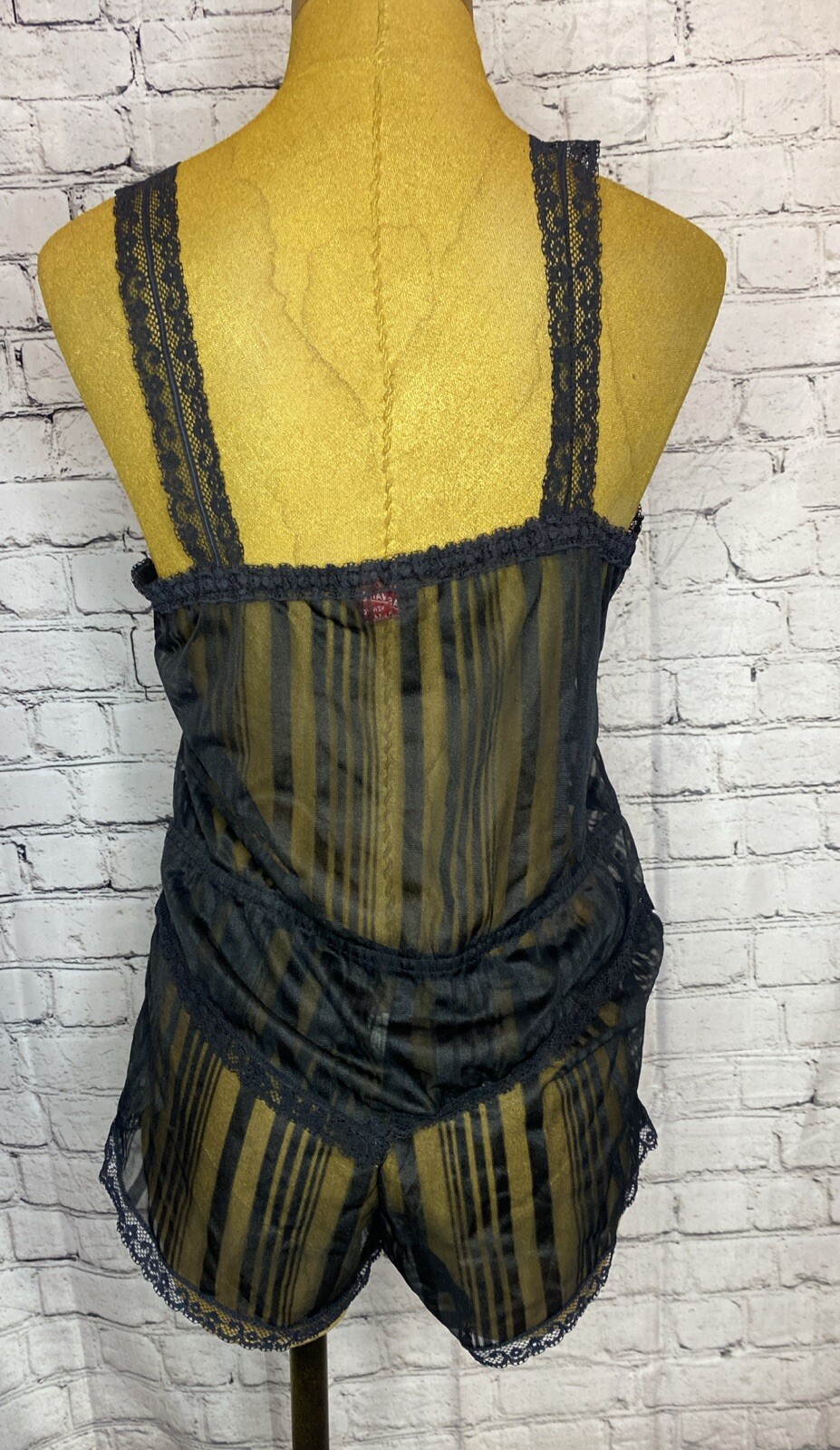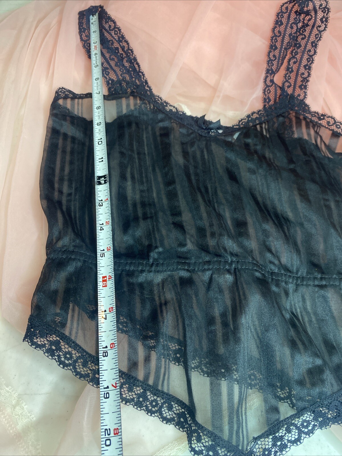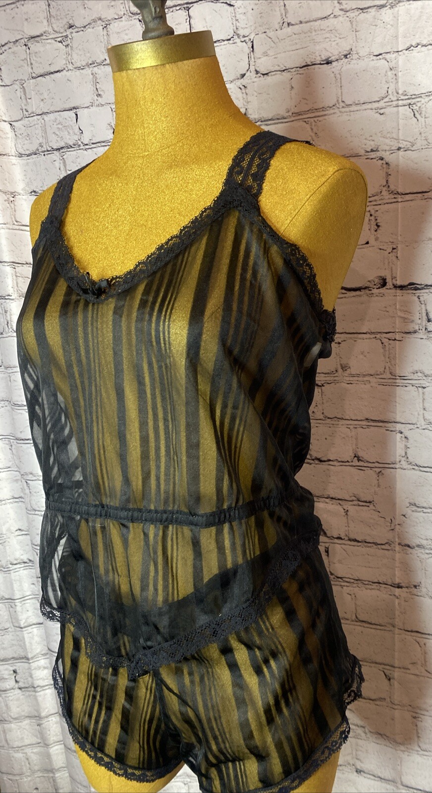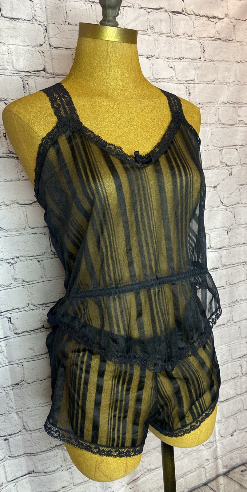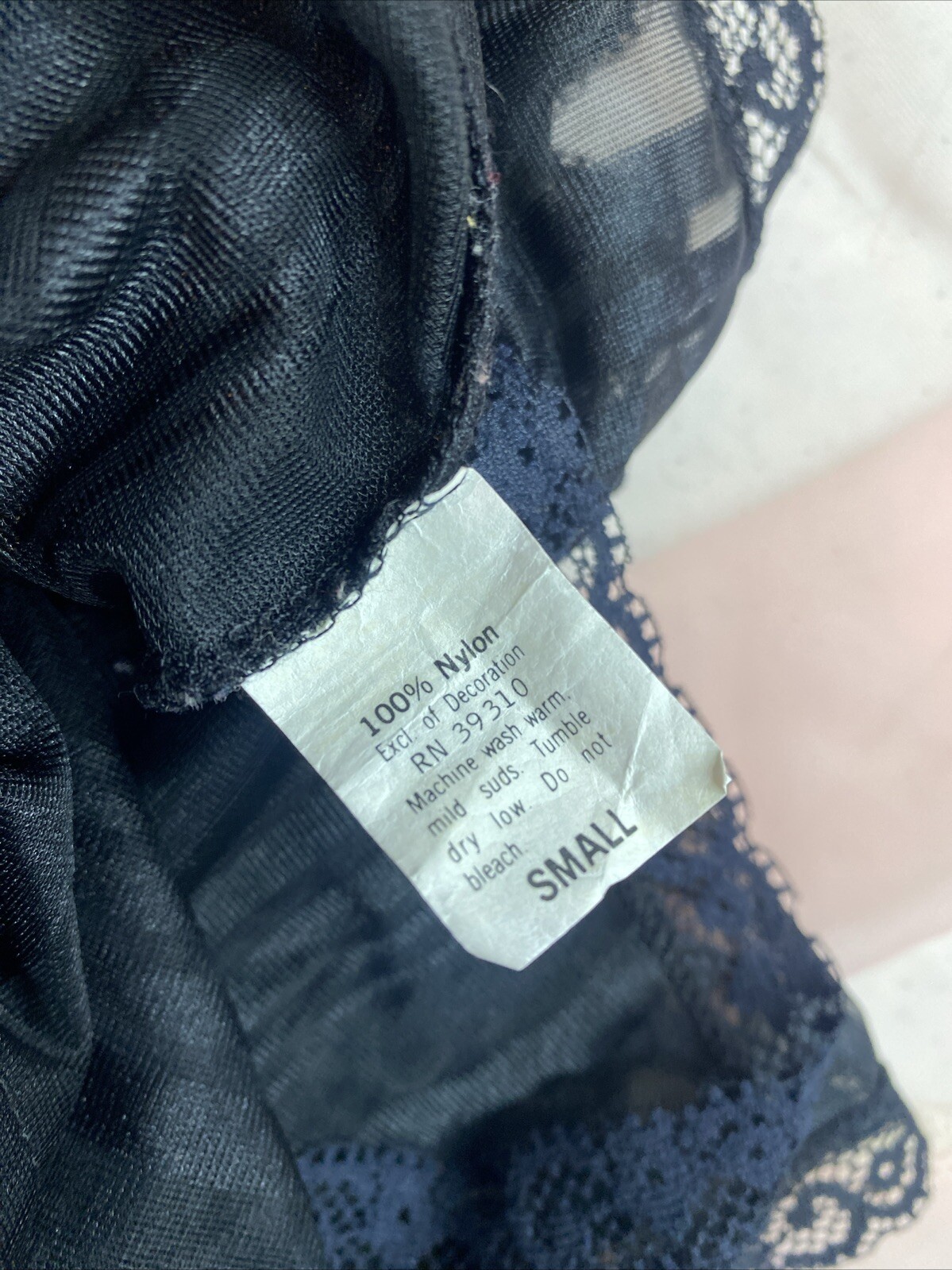 как выглядит Vtg New York Fascination Lingerie Black Nylon Sheer Lace 2 Piece Set USA Made фото
