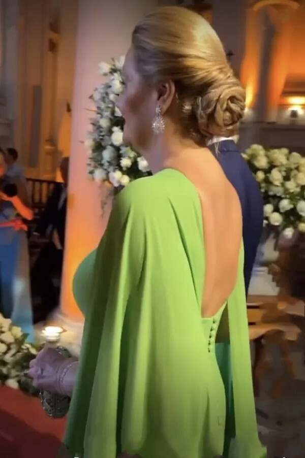 Green Chiffon Mother of the Bride Dress with Cape Train Plus Size Eveninng Gown