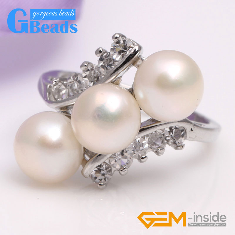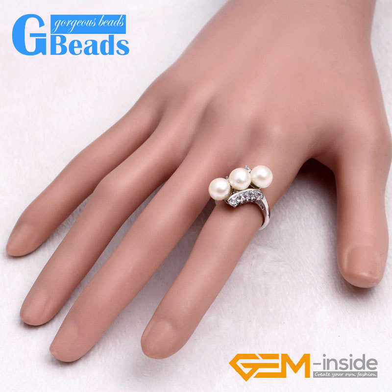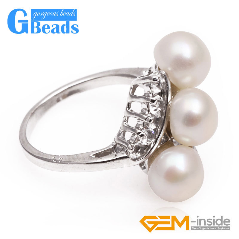 как выглядит White Gold Plated Ring For Women 6-7mm Colorful Pearls Jewelry Gifts By Random фото