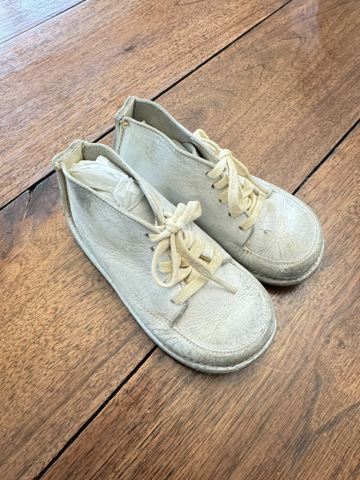 как выглядит Vintage White Leather High top Baby shoes 1950s-1960s фото