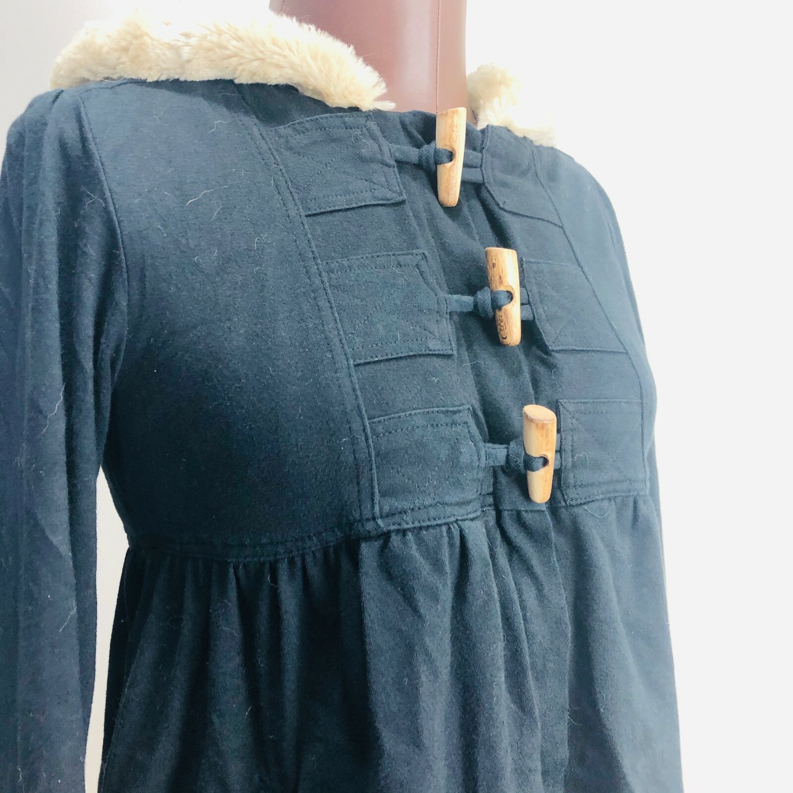 So Low Juniors Hoodie Baby Doll Toggle Full Zip Partly Fur Lined Black Large /14