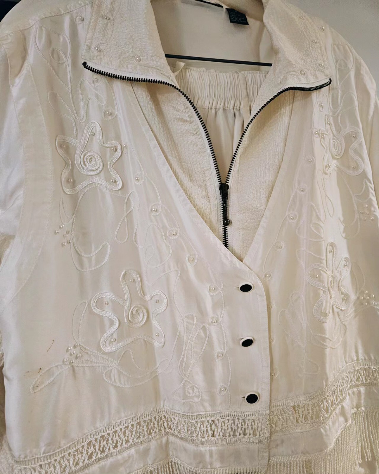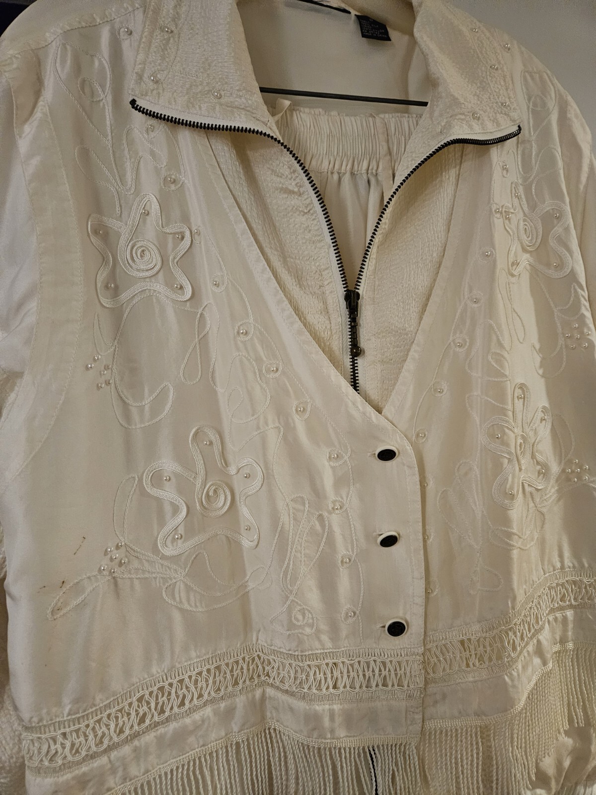 как выглядит Vintage White Mureli Tracksuit 90s Silk 2pc Set Size Small фото