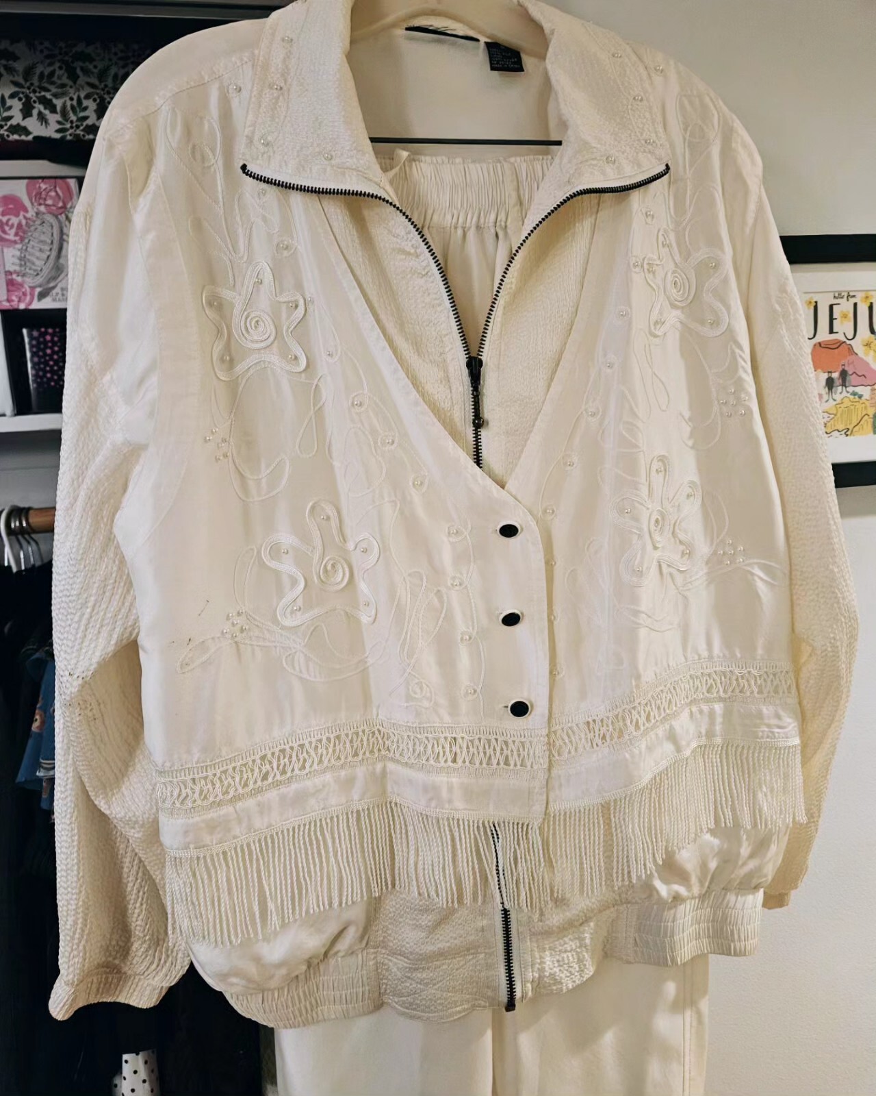 Vintage White Mureli Tracksuit 90s Silk 2pc Set Size Small