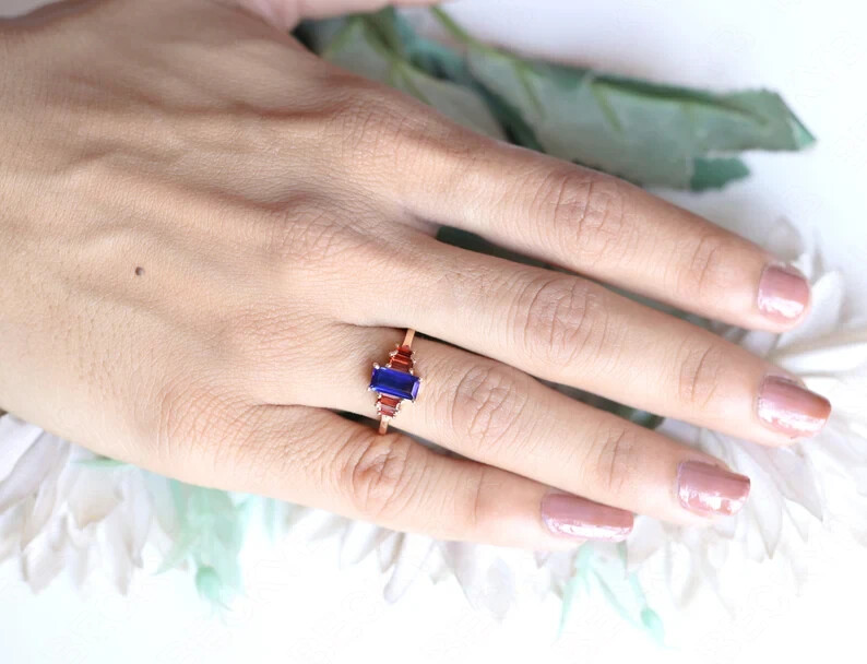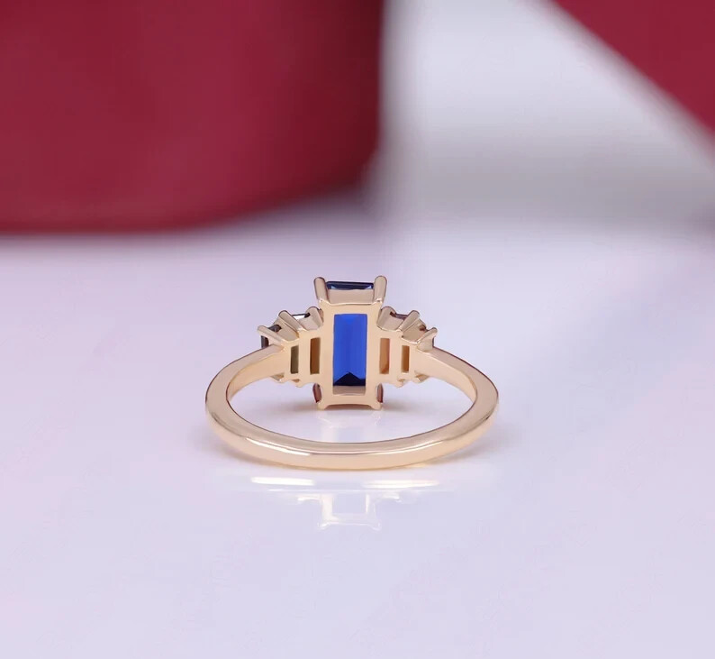 как выглядит Lab created blue sapphire ring yellow gold blue sapphire ring gift for women фото