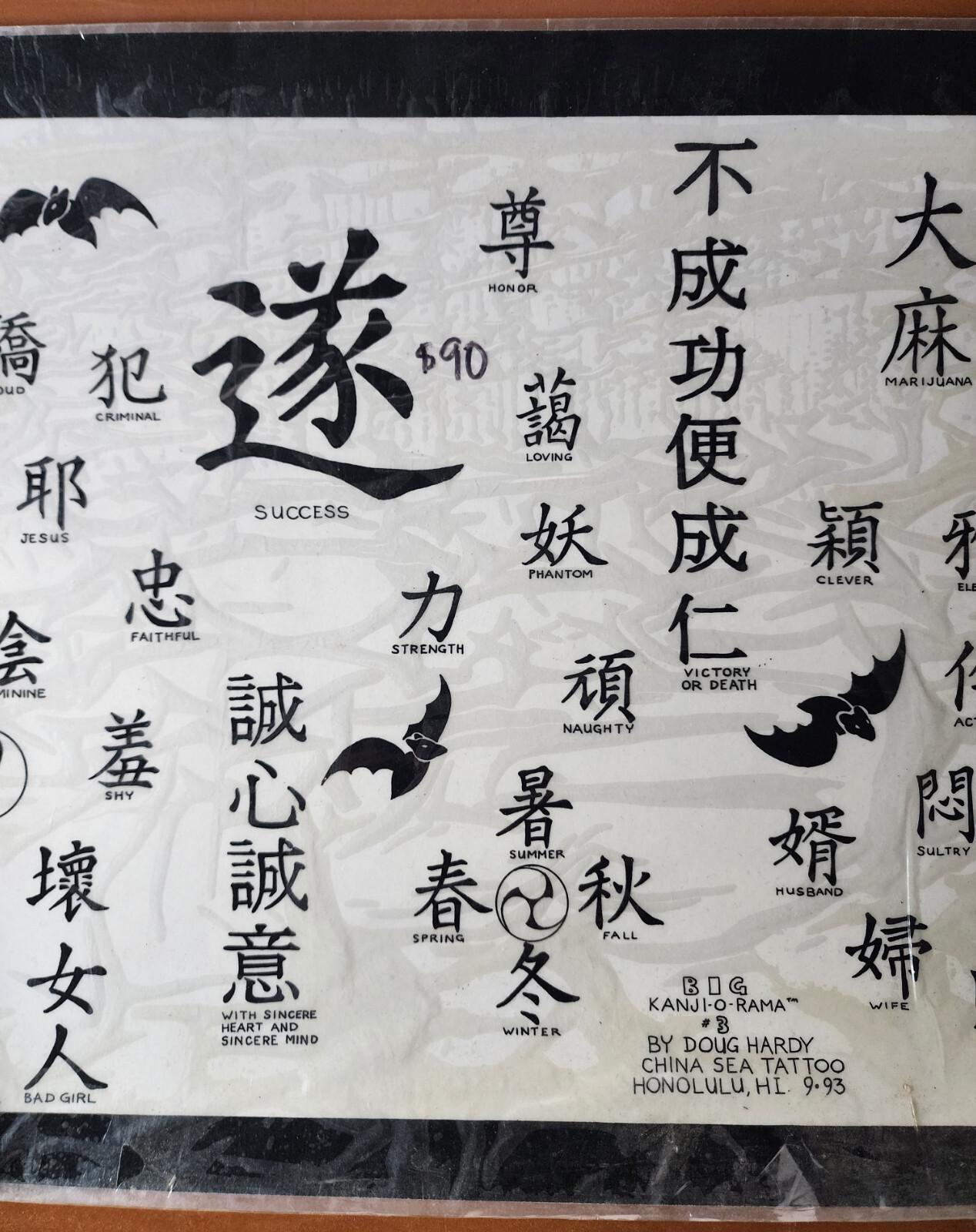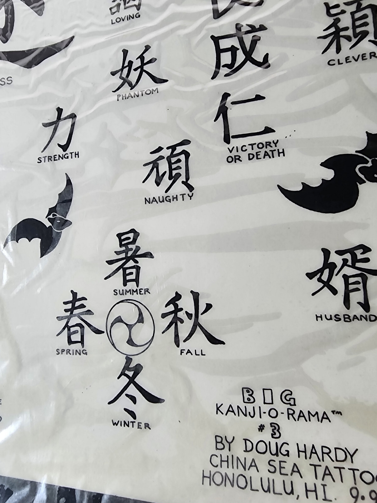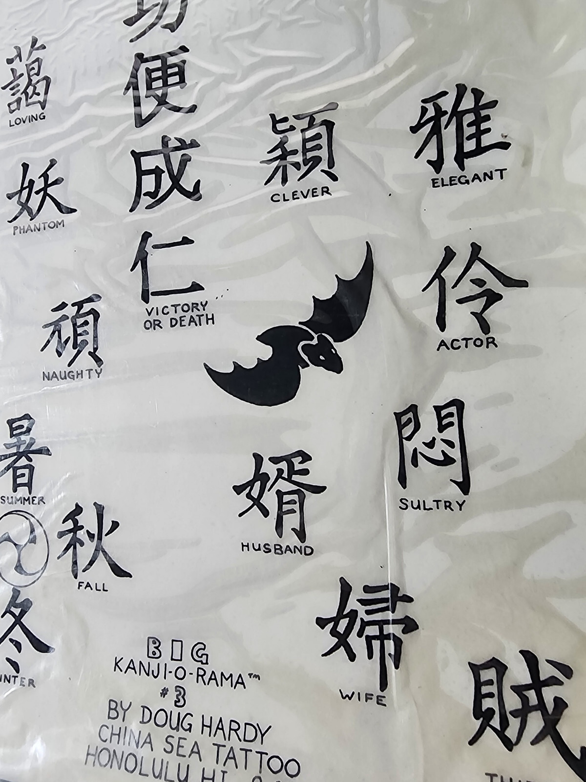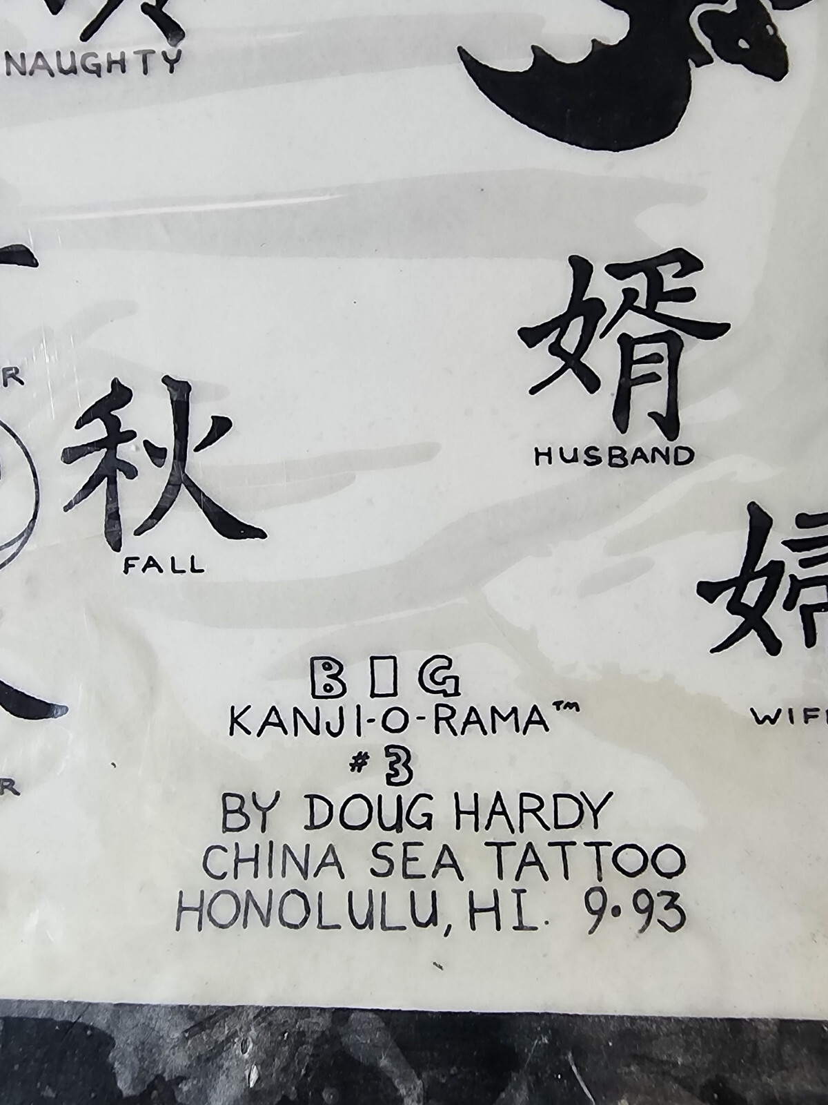 ORIGINAL Vintage China Sea Doug Hardy Old Shop Used, Kanji Tattoo Flash Sheet 9