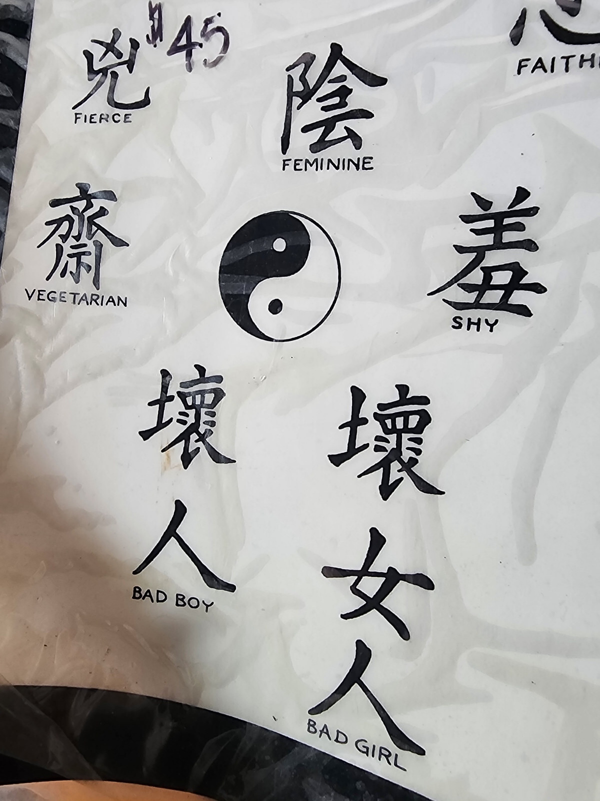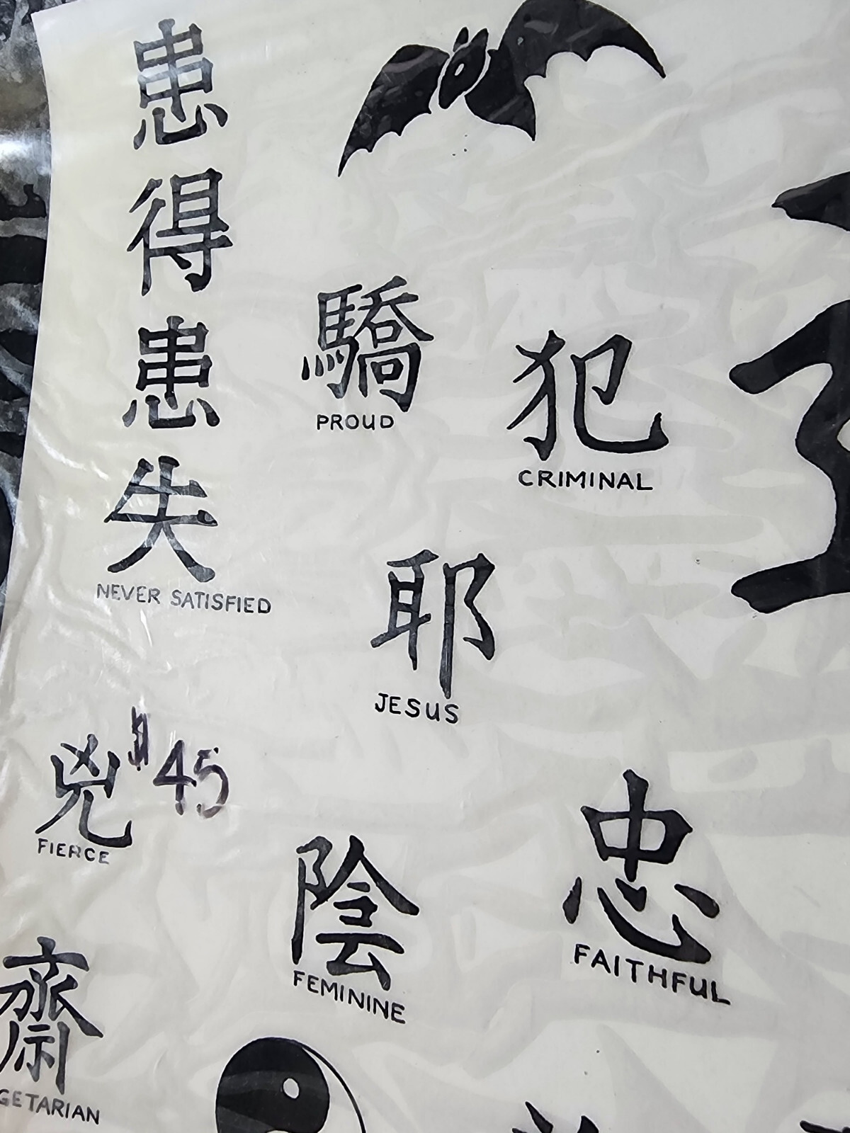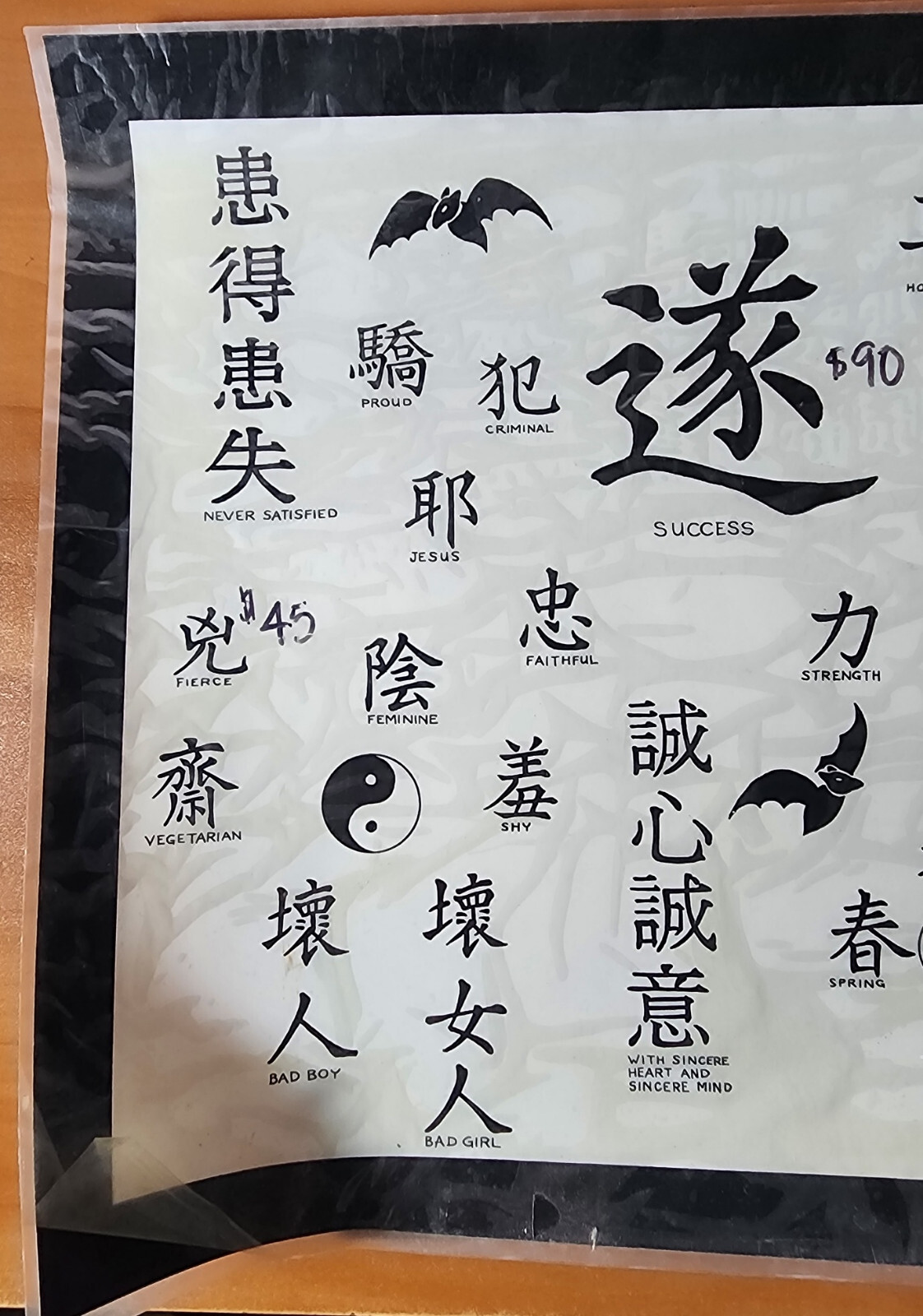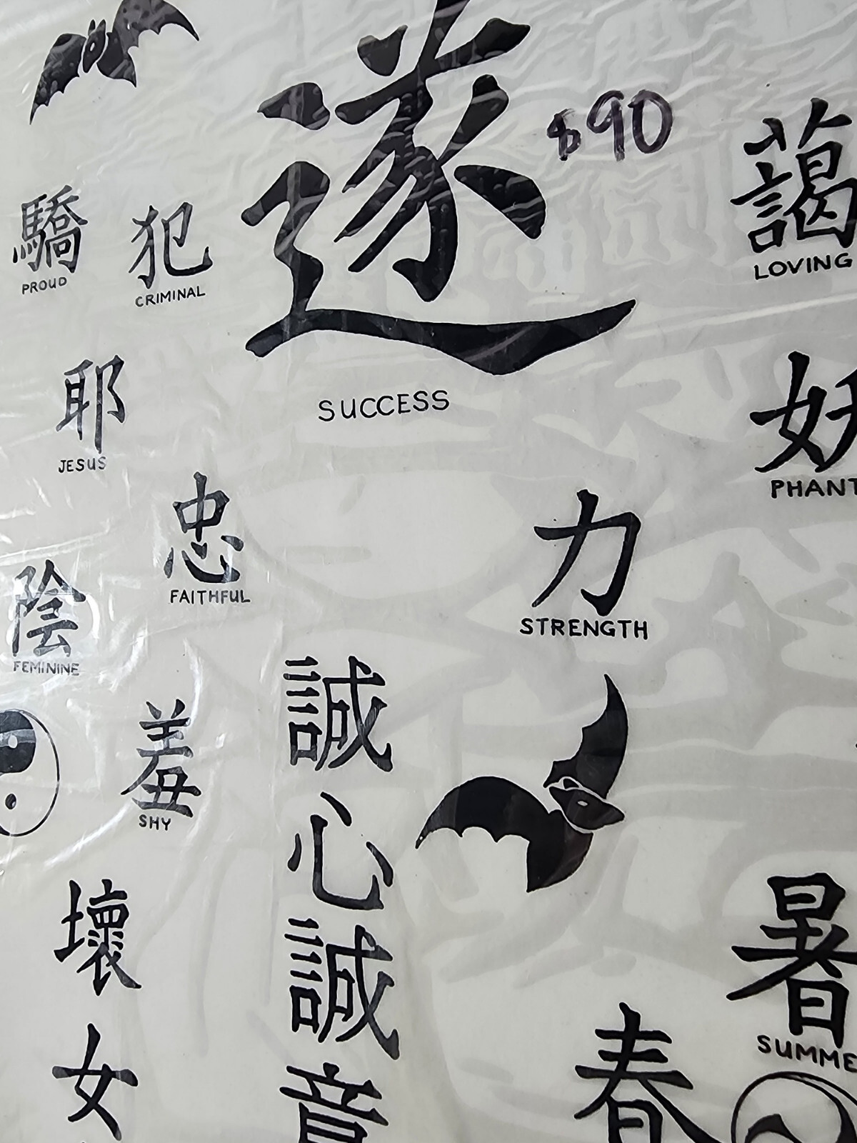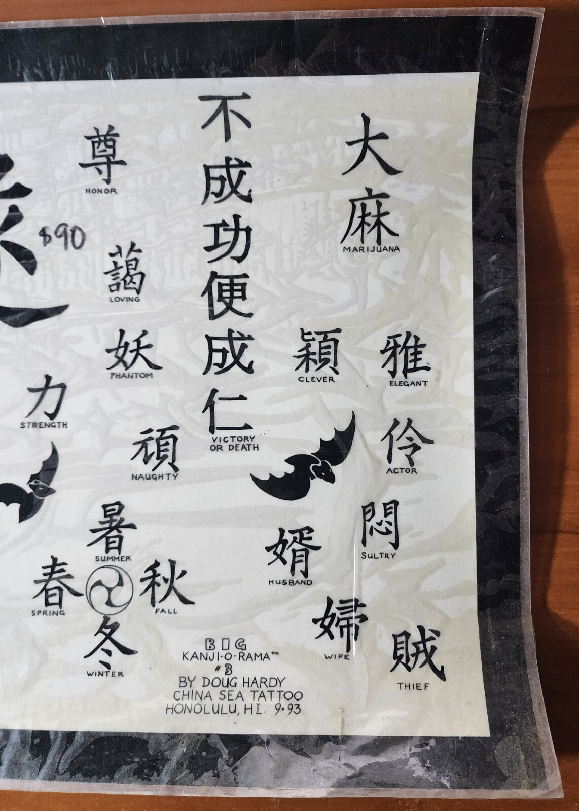 ORIGINAL Vintage China Sea Doug Hardy Old Shop Used, Kanji Tattoo Flash Sheet 9