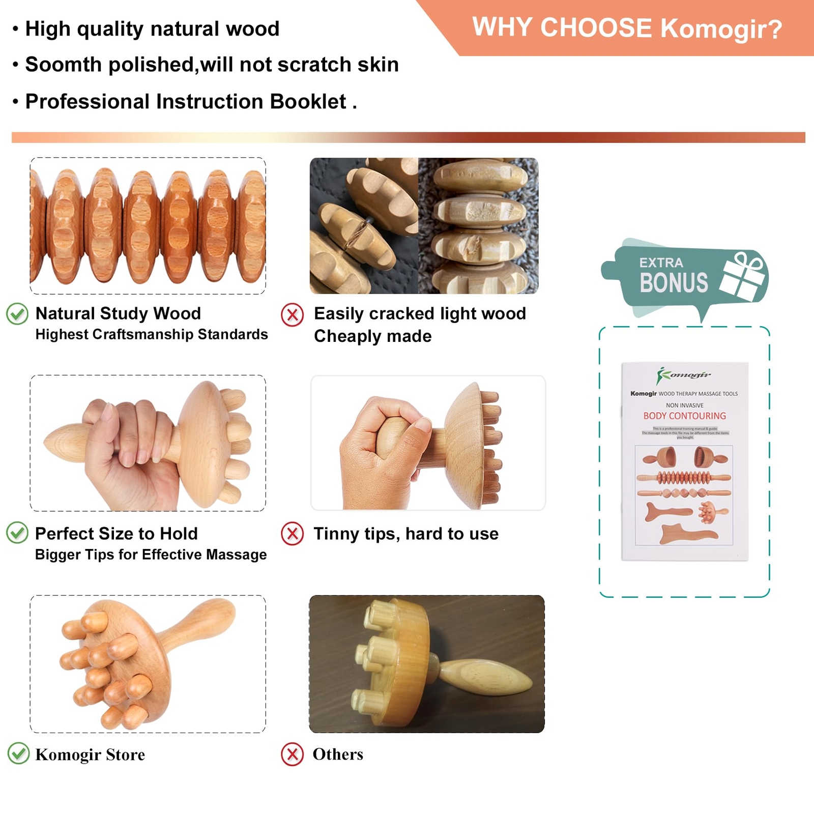 5 Pcs Wood Therapy Massage Tools Lymphatic Drainage Massager for Muscle Pain