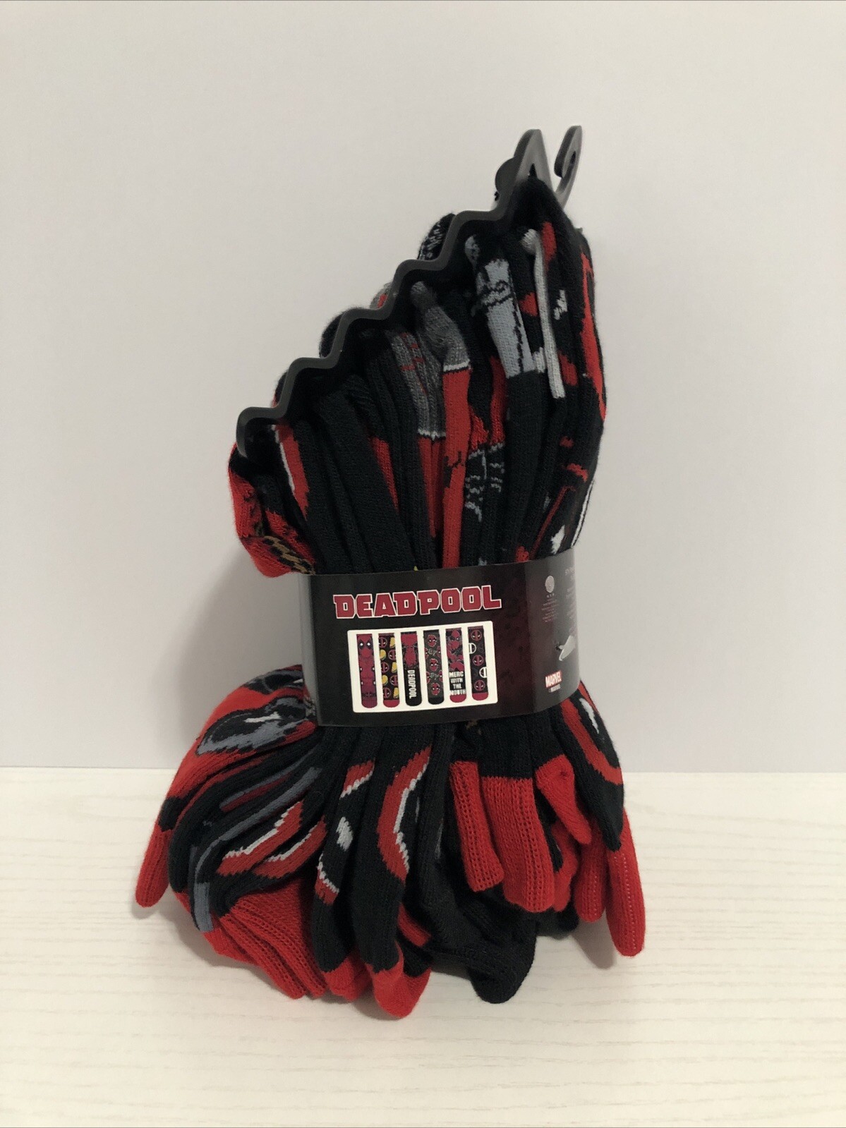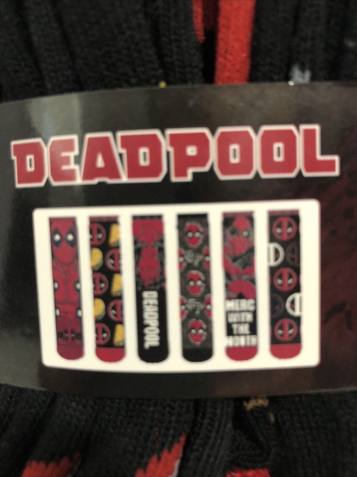 как выглядит 6 Pairs of Marvel Deadpool Crew Socks Shoe Size 6-12 NWT фото