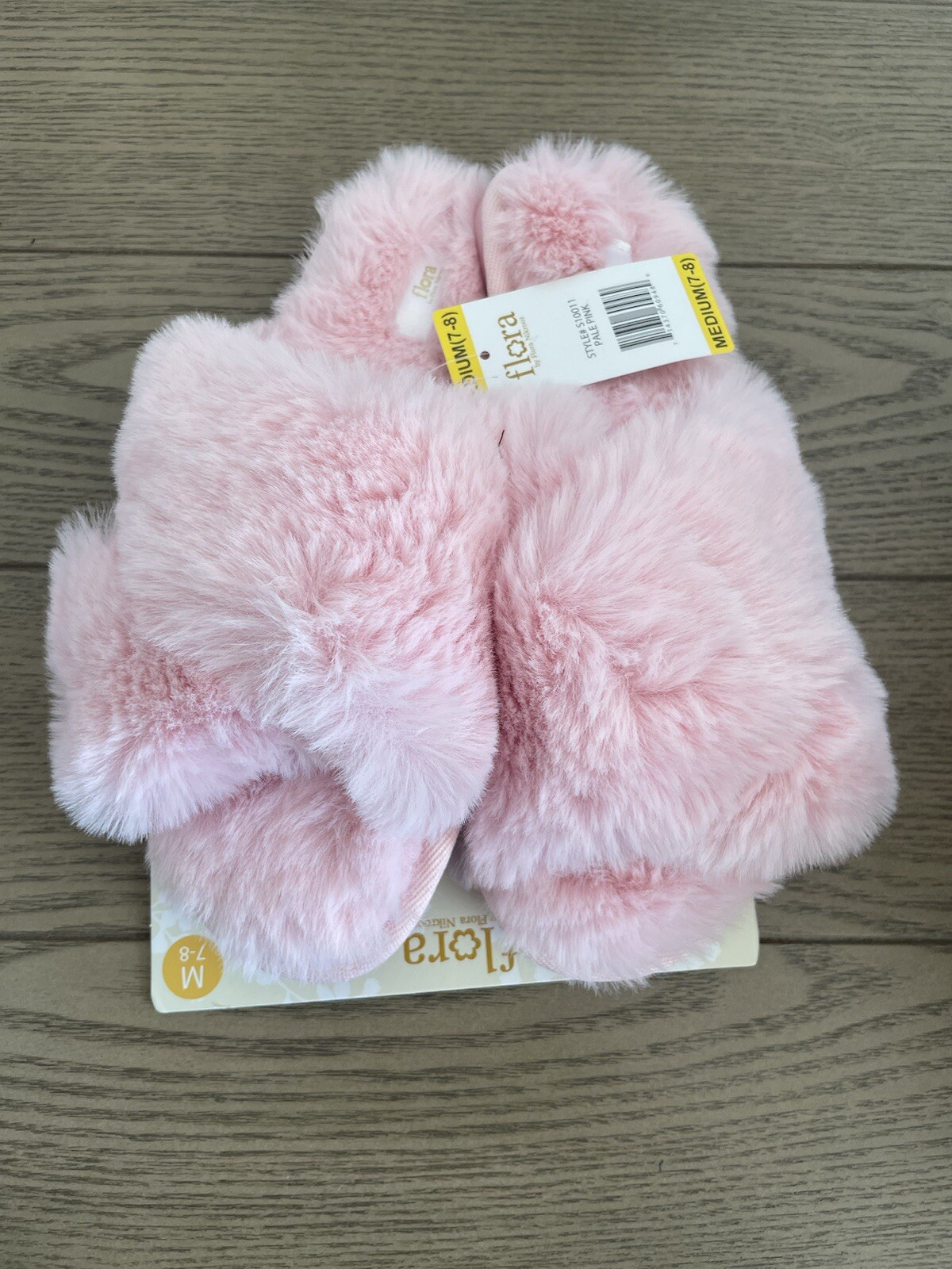 как выглядит White Soft Fuzzy Flora Slippers Size Medium 7-8 фото