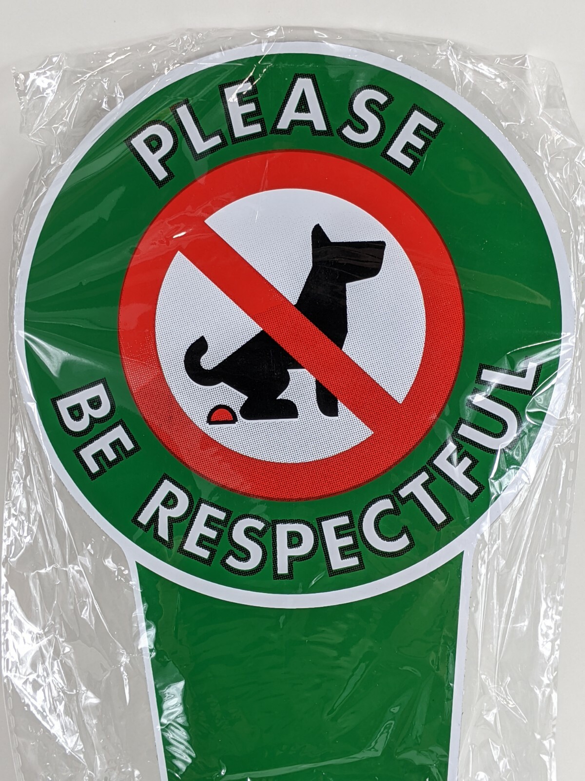 Please Be Respectful No Dog Poop Yard Sign 4mm Aluminum Composite Staked 12