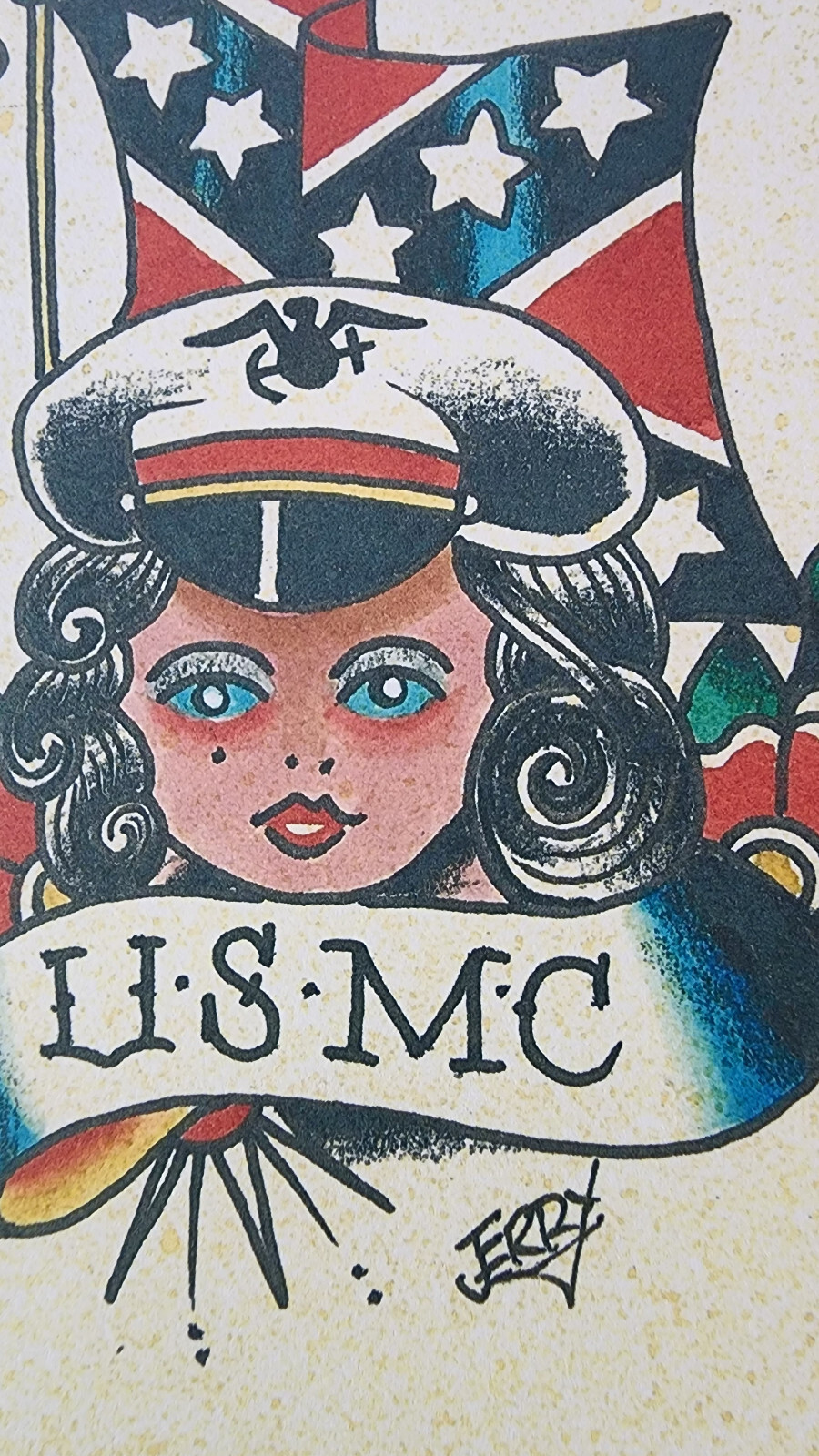как выглядит Sailor Jerry Swallow Traditional Vintage Style Tattoo Flash Cut Piece USMC Girl фото