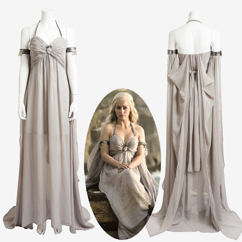 как выглядит Game of Thrones Daenerys Targaryen Gray Dress Costume Cosplay Suit фото