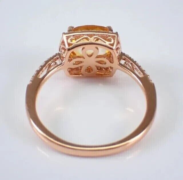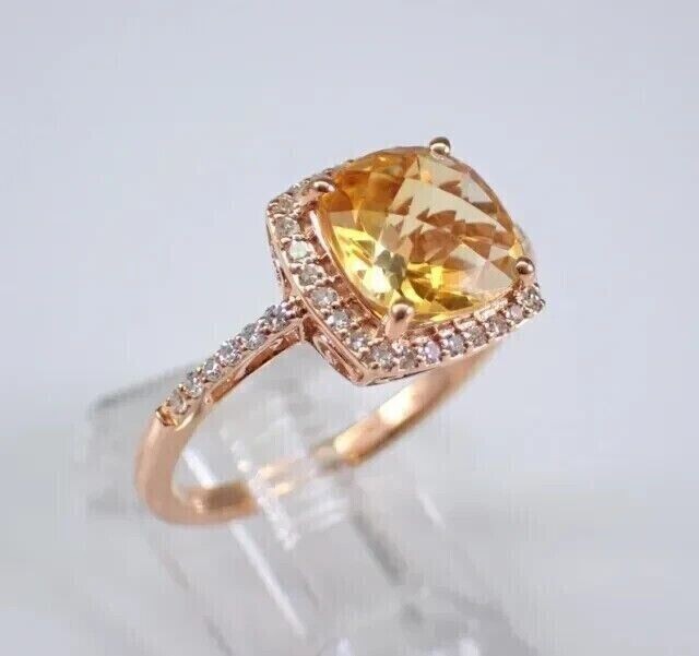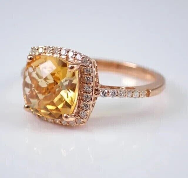 2Ct Cushion Cut Simulated Citrine Engagement Halo Ring 14k Rose Gold Plated