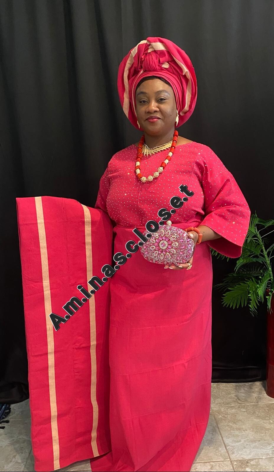 Fushia Pink Aso Oke WRAPPER AND BUBBA SET FOR WOMEN AND GROOM PARENTS