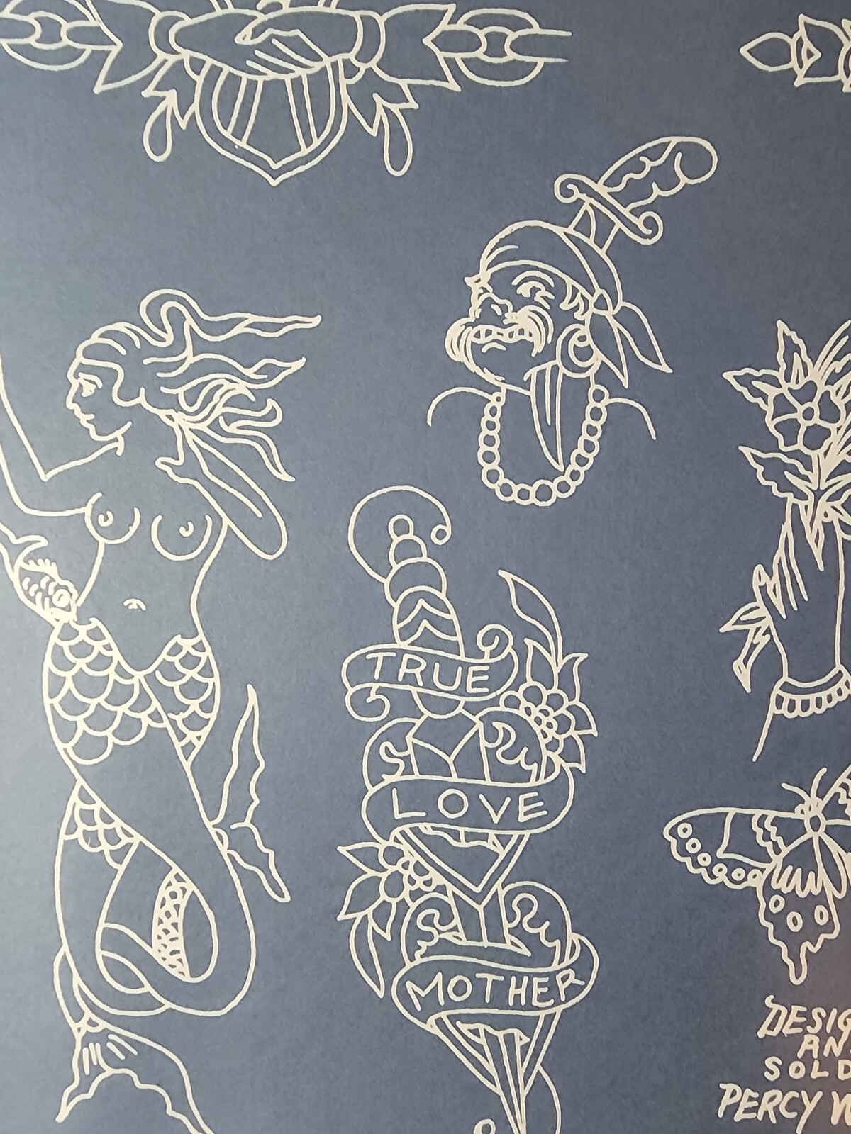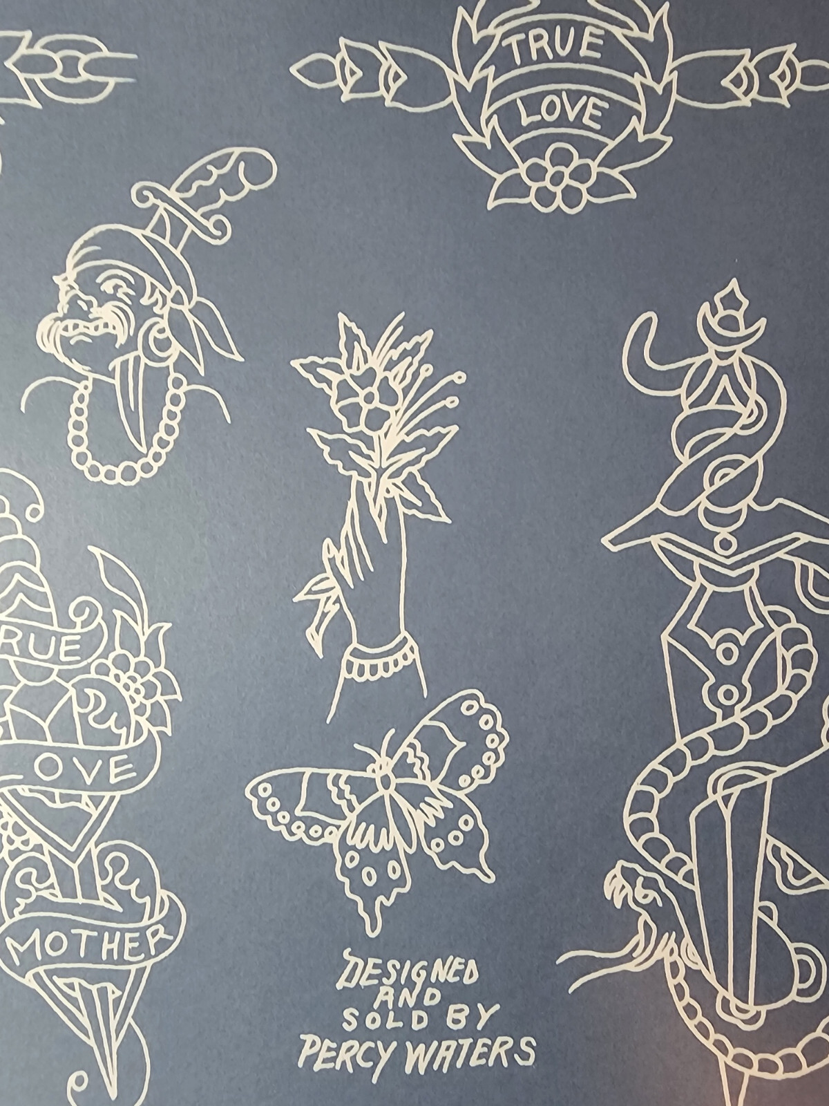 Percy Waters Traditional Vintage Style Tattoo Flash Sheet Mermaid, Pirate, USA