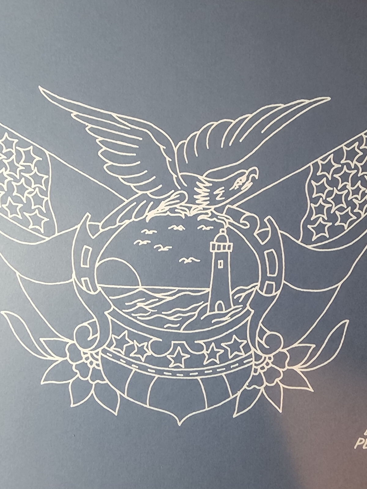 Percy Waters Traditional Vintage Style Tattoo Flash Sheet Eagle Lighthouse Flag