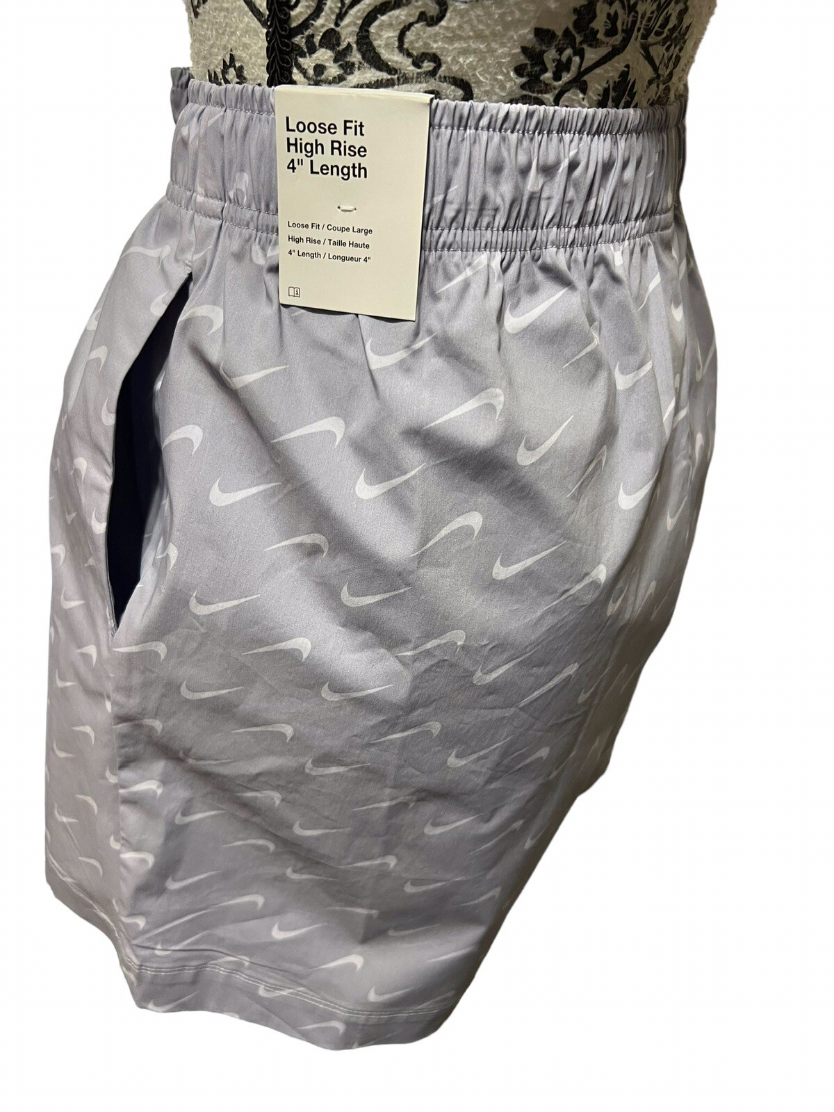 как выглядит NIKE Women s Size Medium Cotton 2 Piece Short Set Purple All Over Print New фото