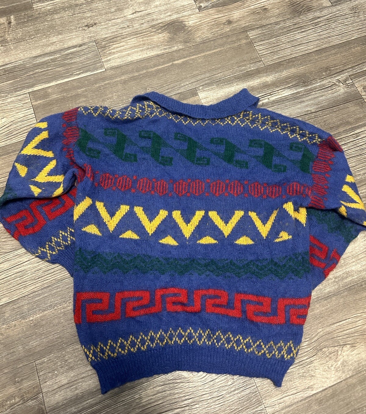 как выглядит VTG Shaggy Man Cardigan Mens XL Colorful Mohair Wool Sweater 60s 70s фото