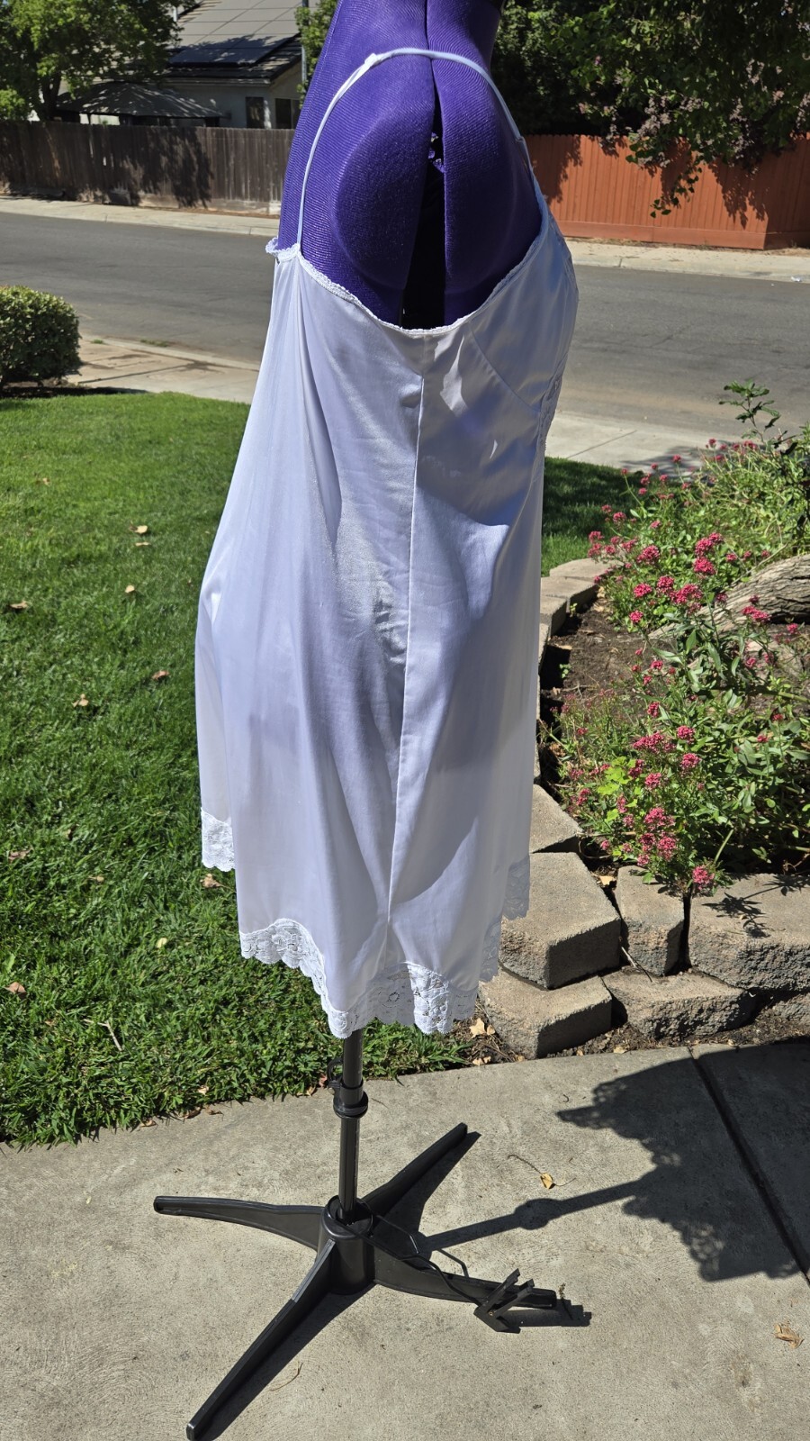 как выглядит Vintage White Slip Nightgown with Lace Bust and Hem Lingerie Size L фото