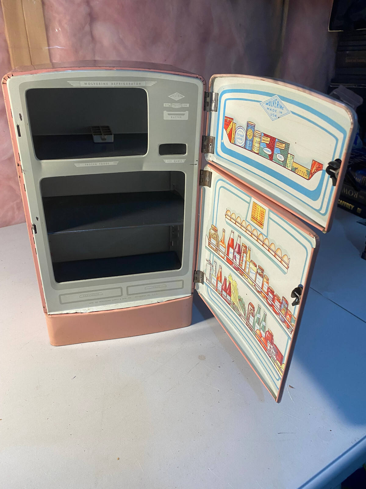 Vintage Wolverine Metal Refrigerator Freezer Pink 1950's Coldspot Sample Litho