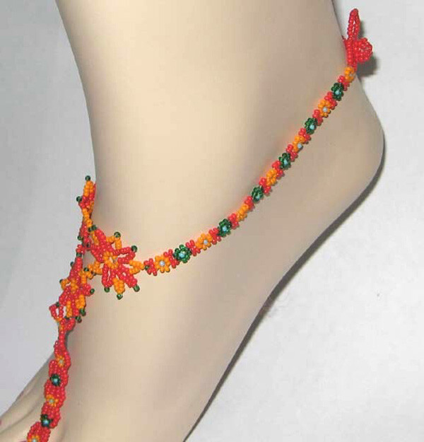 как выглядит Handmade Red Yellow Beaded Barefoot Anklet Flower фото