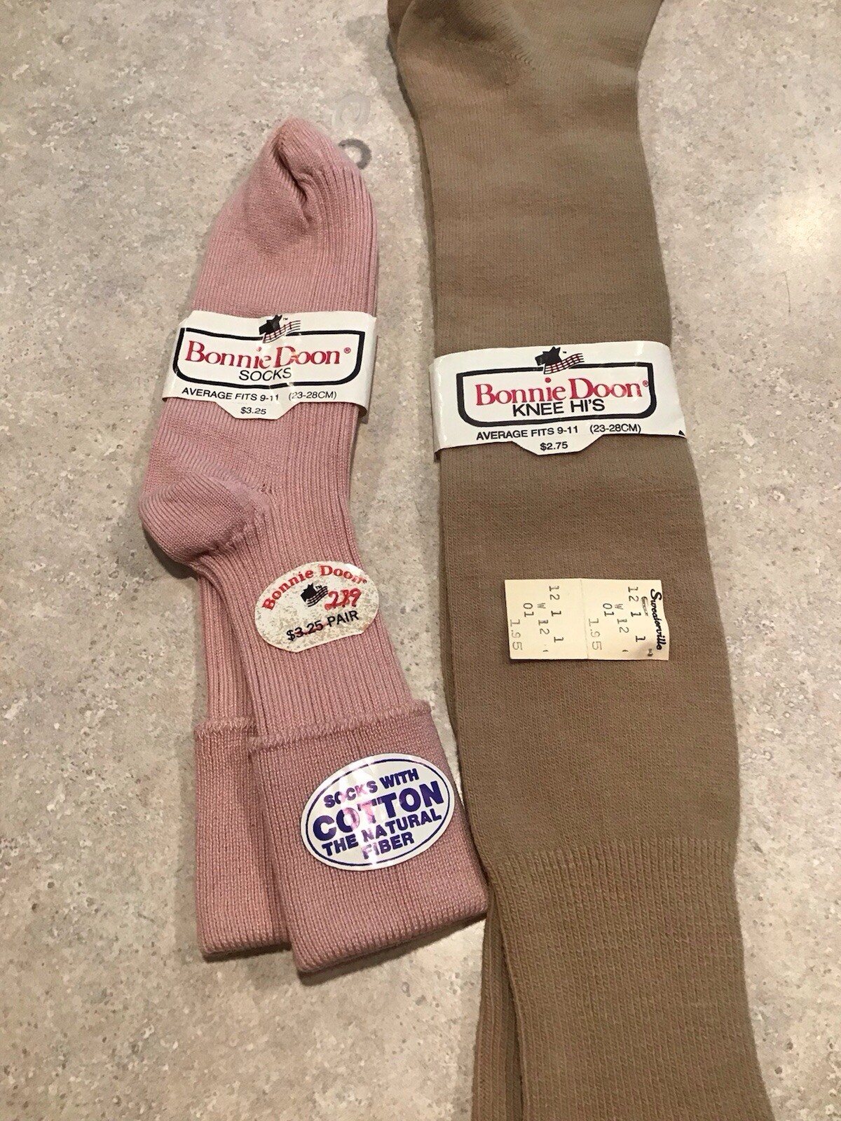 2 Vintage Pair Of Bonnie Don Socks Tan Knee Pink Ankle
