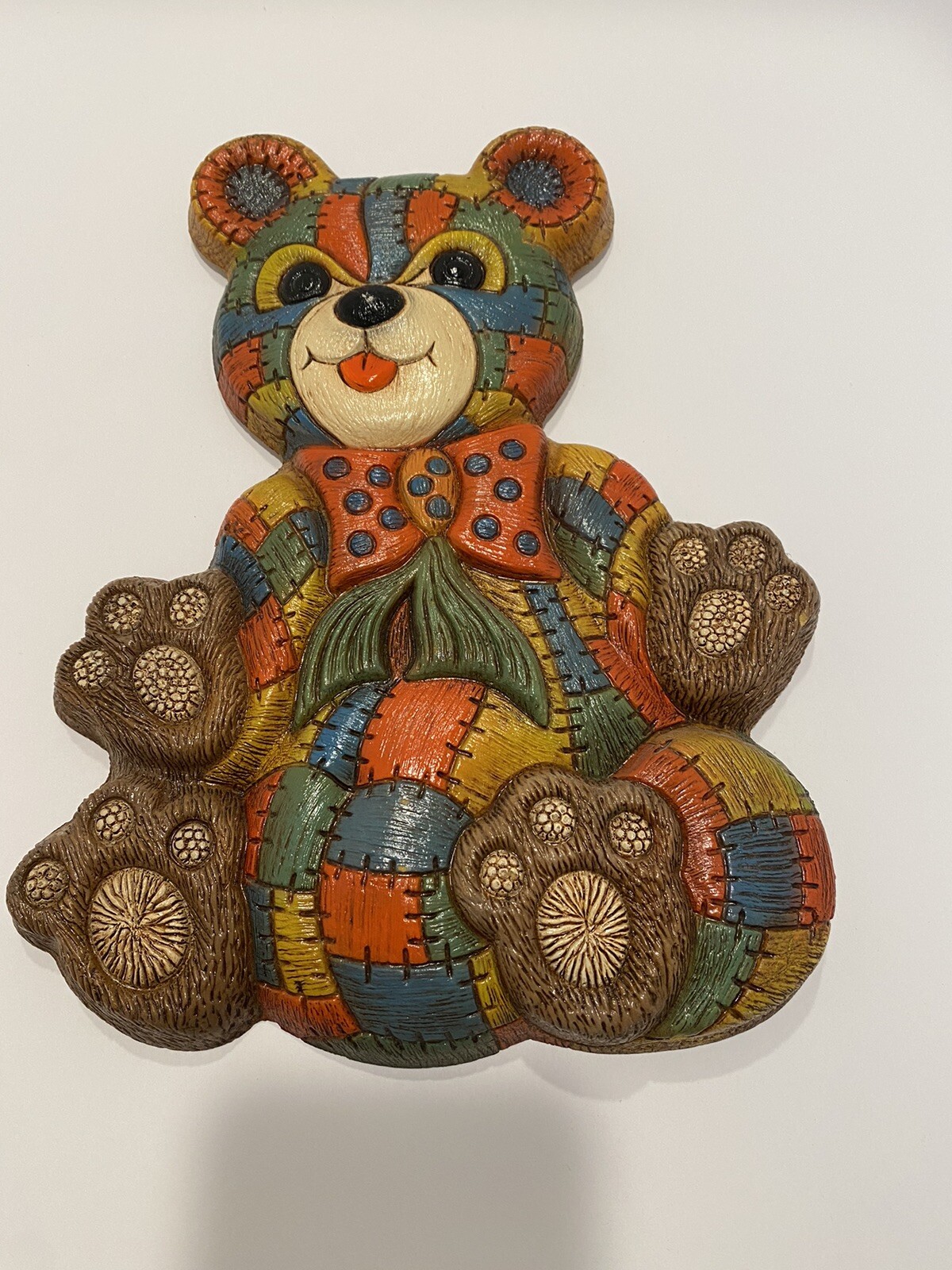 как выглядит Vintage 1970 s Retro Foam Craft Patchwork Horse Bear Hanging Decor фото