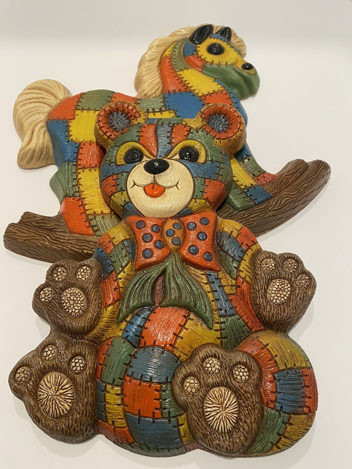 Vintage 1970 s Retro Foam Craft Patchwork Horse Bear Hanging Decor