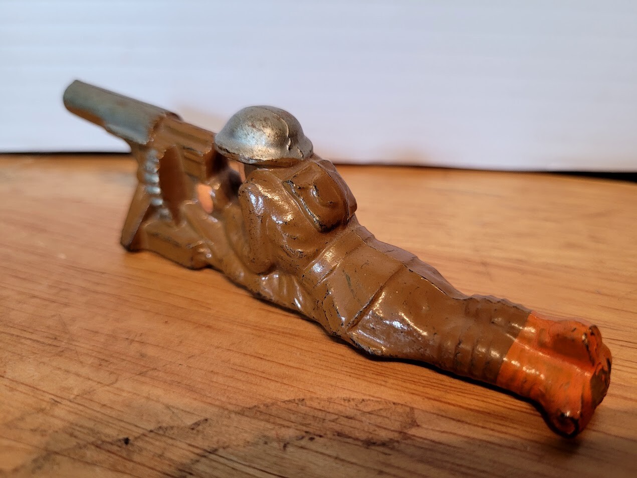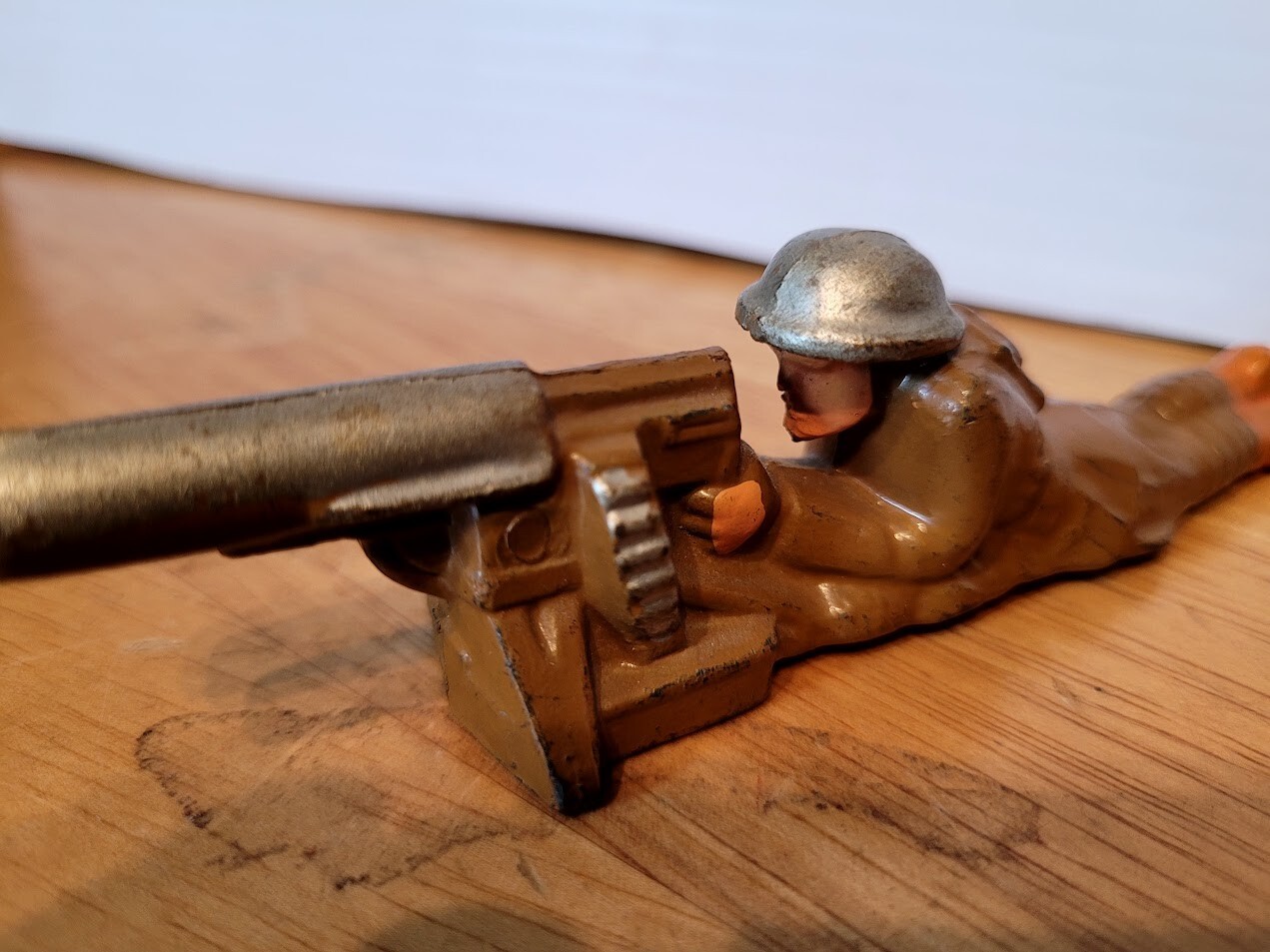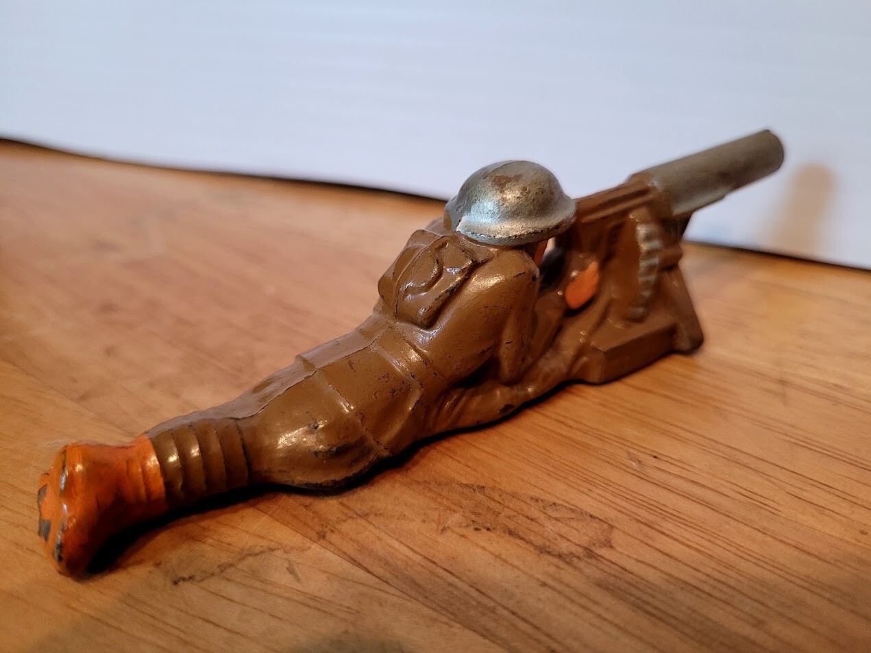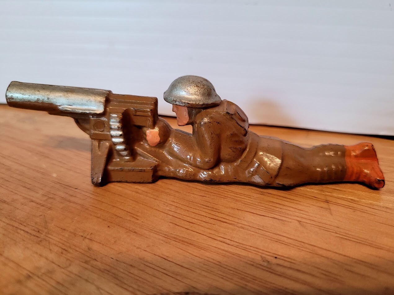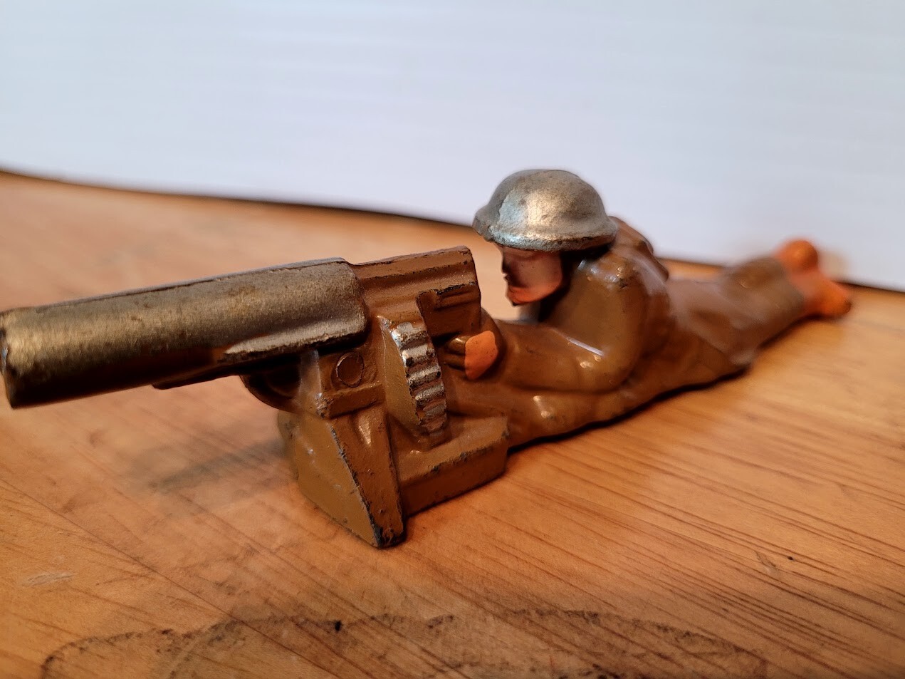 VERY NICE 1930s MANOIL M19 LEAD DIME STORE MACHINE GUNNER
