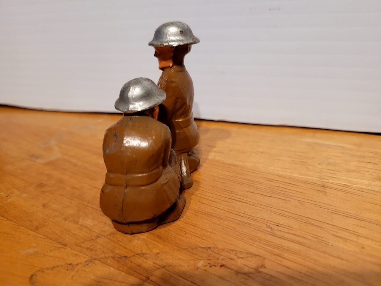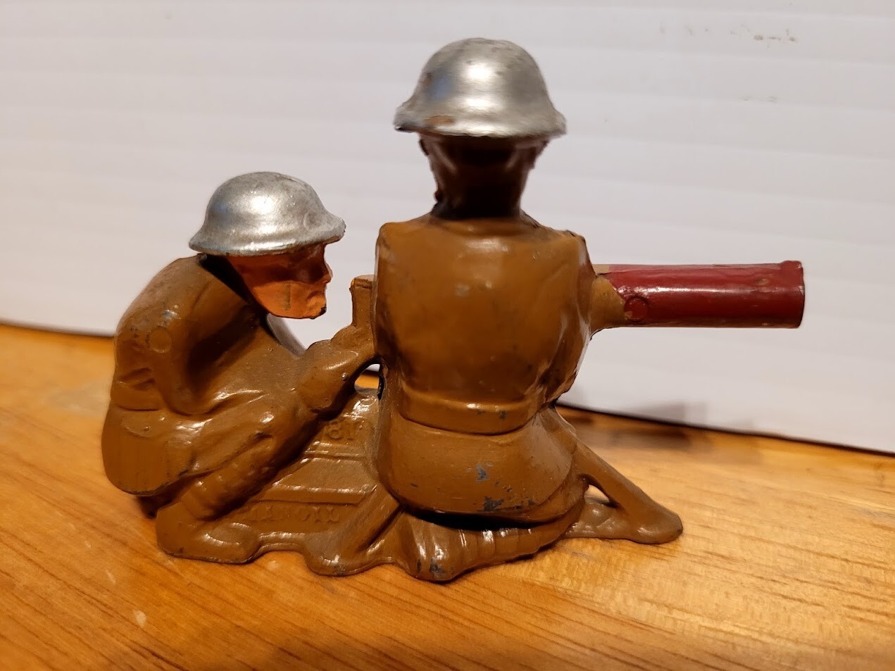 VERY NICE 1930s MANOIL 81 M107 LEAD DIME STORE MACHINE GUNNER W/ HELPER