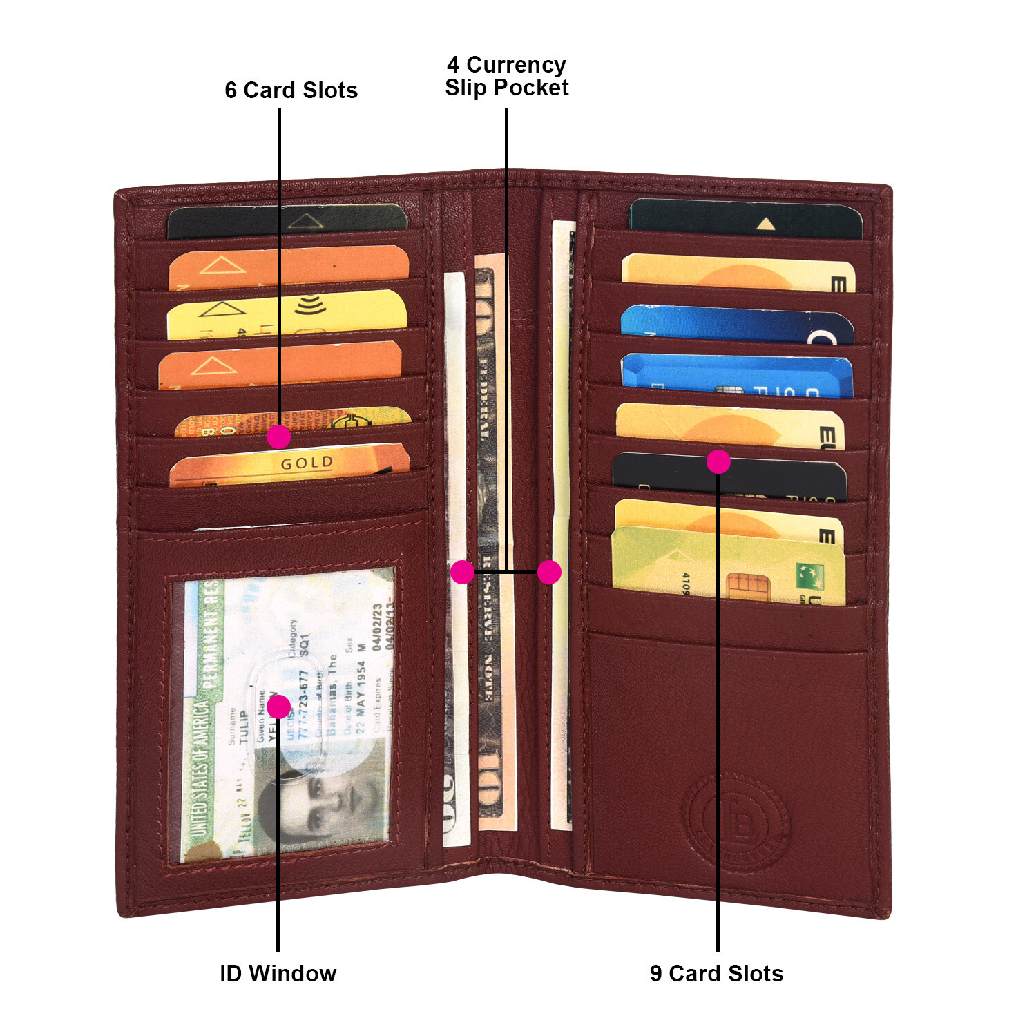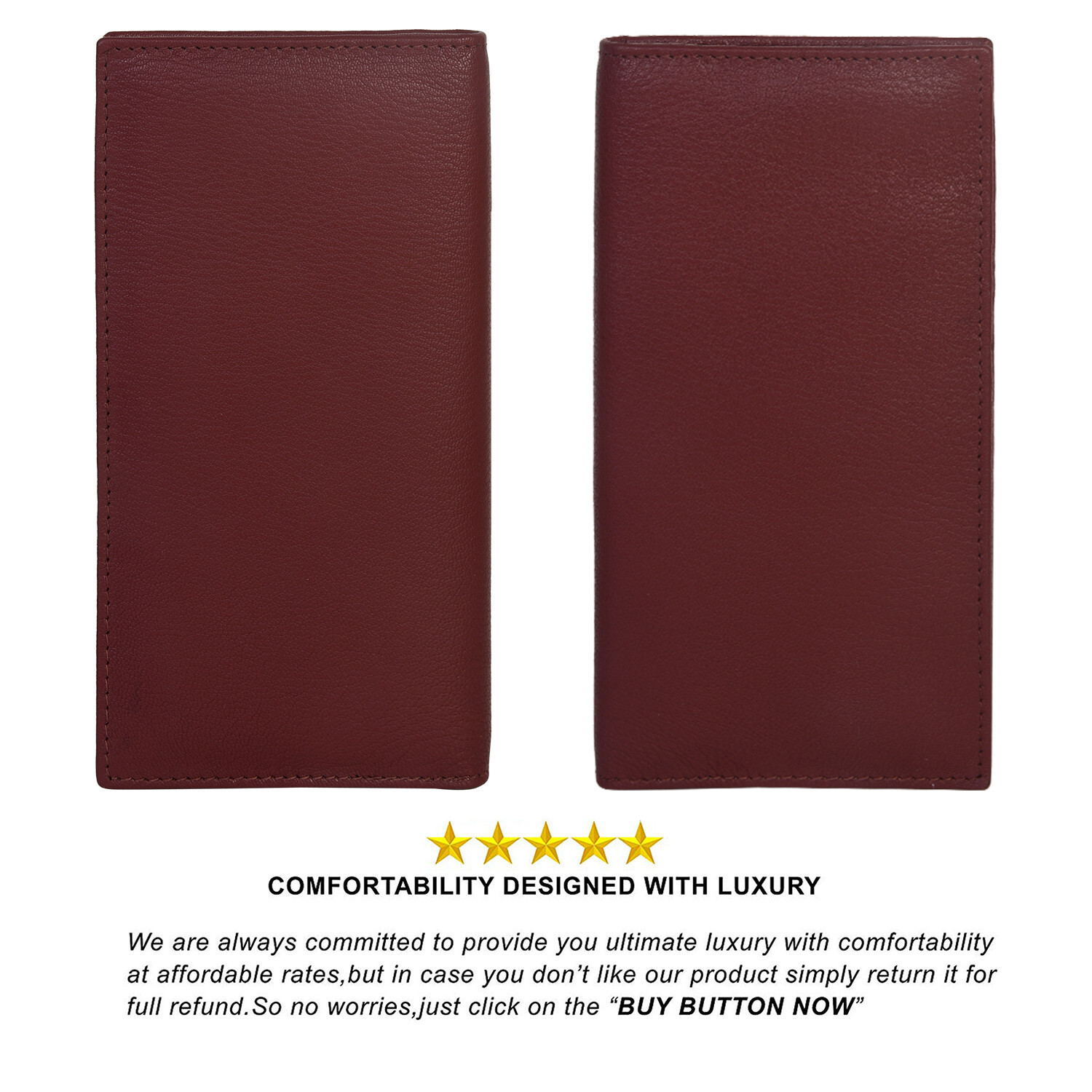 Genuine Leather Men Long Wallet Pockets ID Card Clutch Bifold Purse