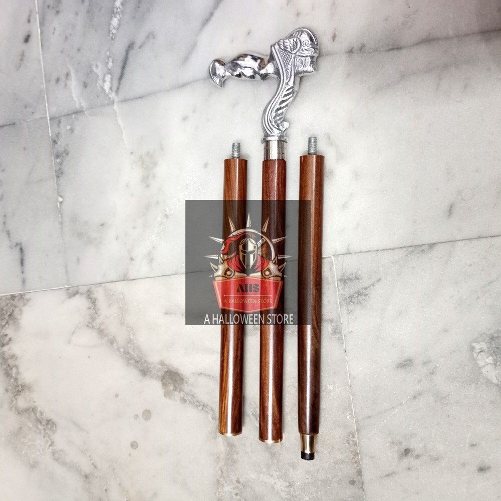 Chrome Finish Alien Skull Head Metal Handle Victorian Wooden Cane Walking Stick