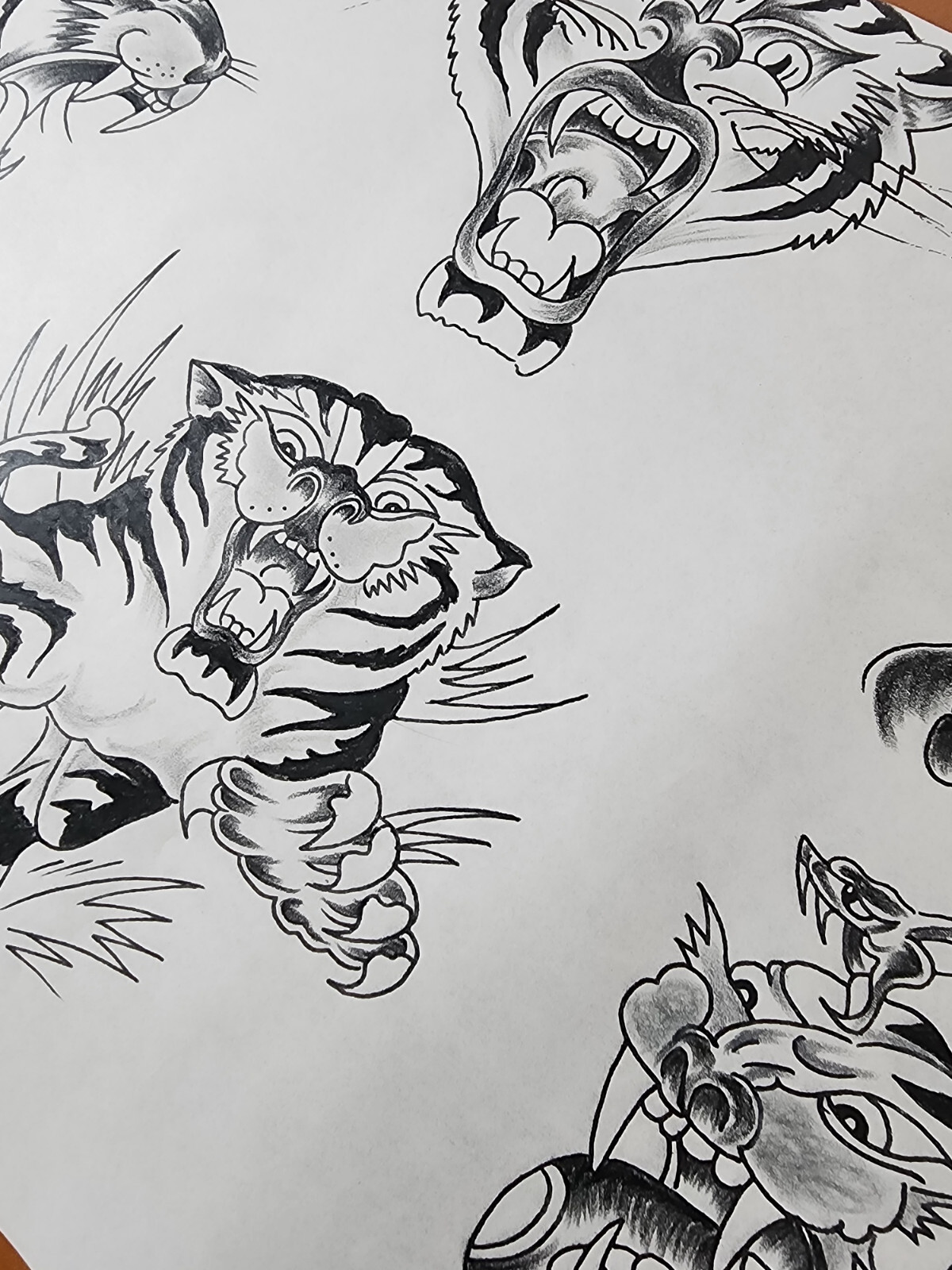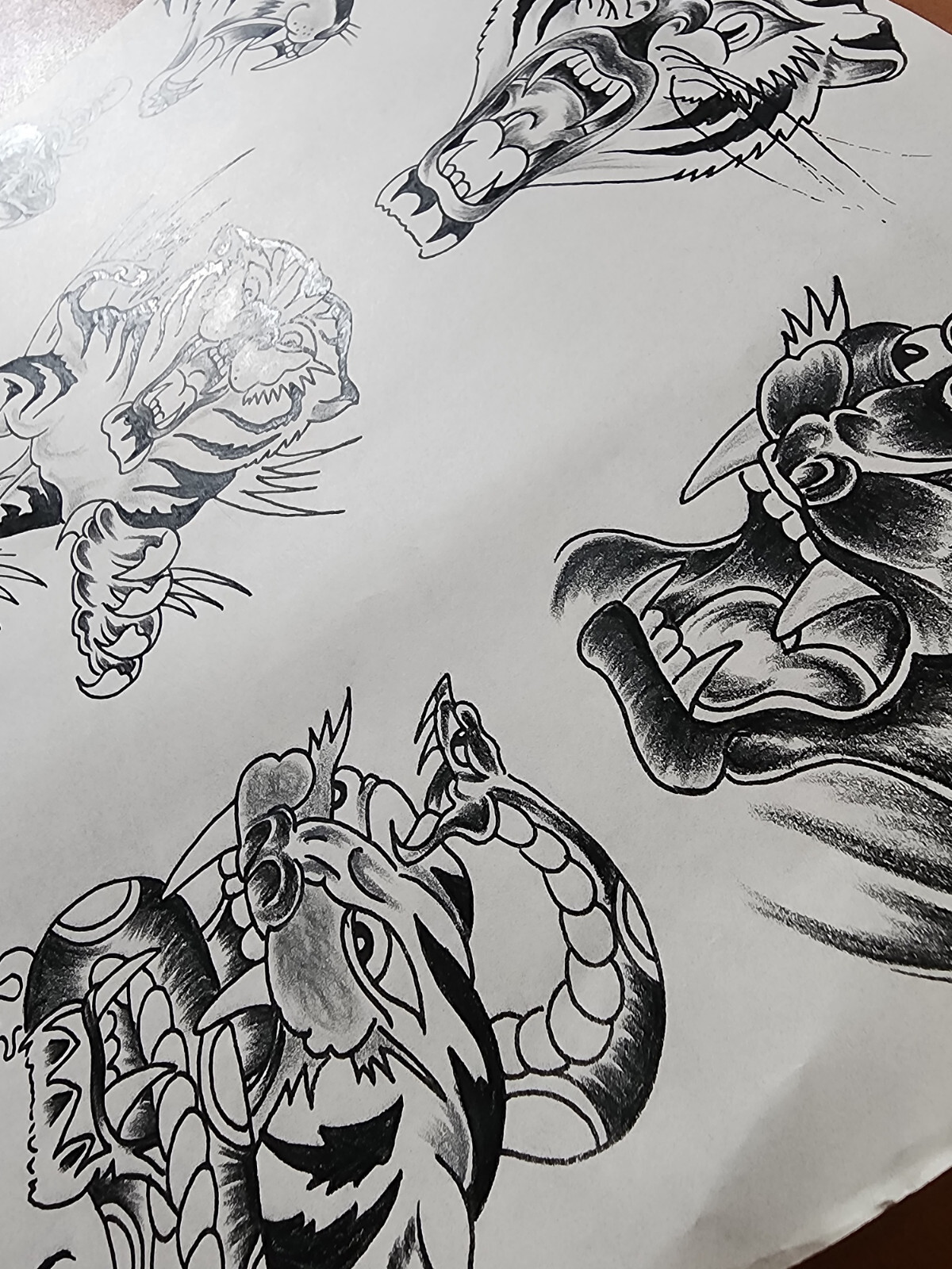 ORIGINAL 1980s HAND DRAWN, Vintage Traditional Tattoo Flash Production Sheet 2