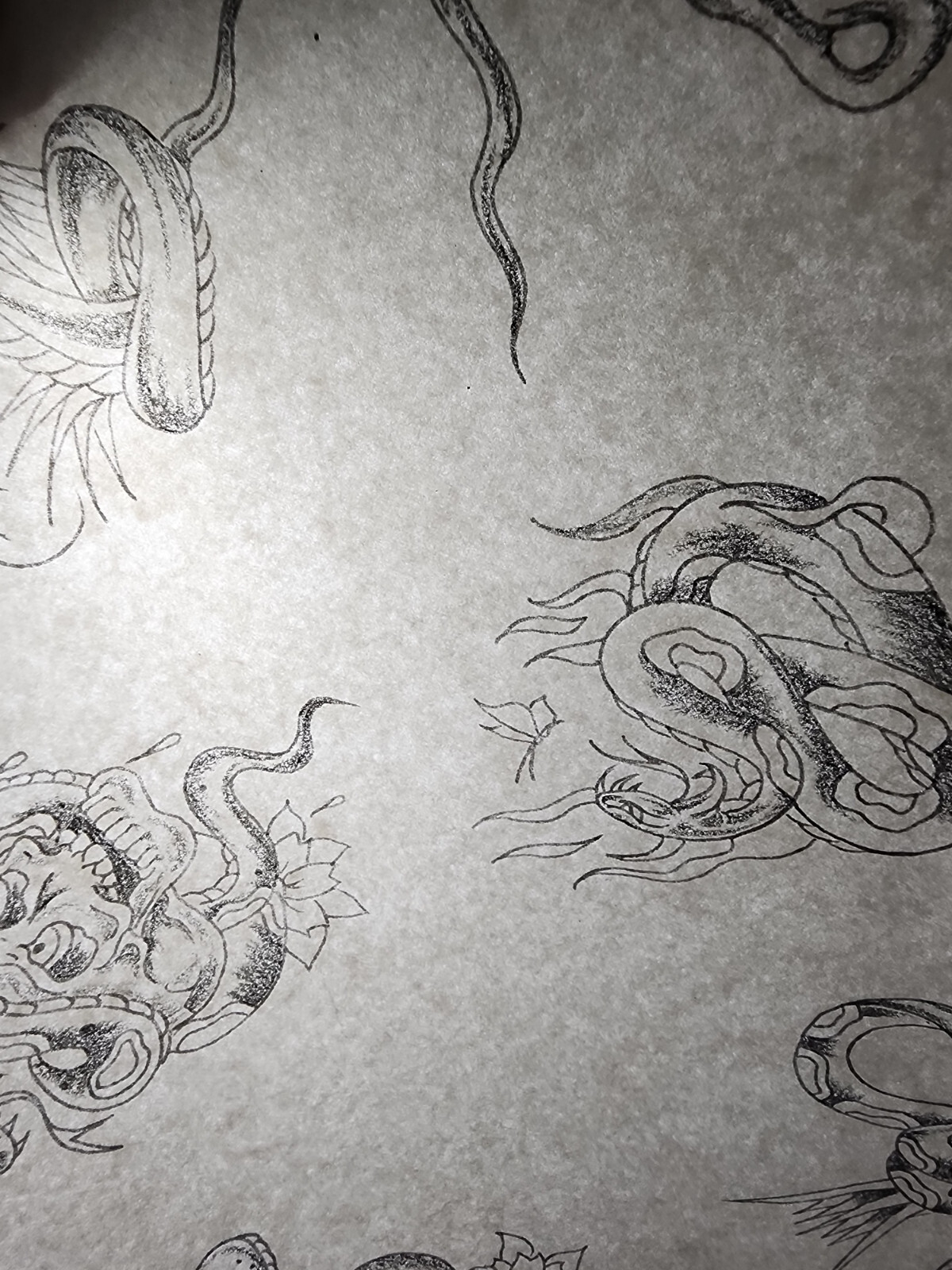 как выглядит ORIGINAL 1980s HAND DRAWN, Vintage Traditional Tattoo Flash Production Sheet 5 фото
