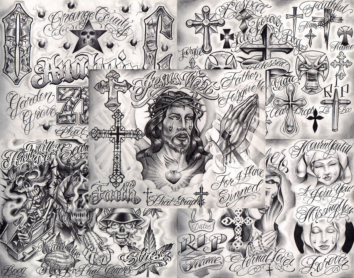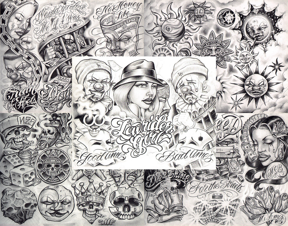 Boog From The Streets With Love Gangsta Style Tattoo Flash 10 Sheet Set 11x14 C